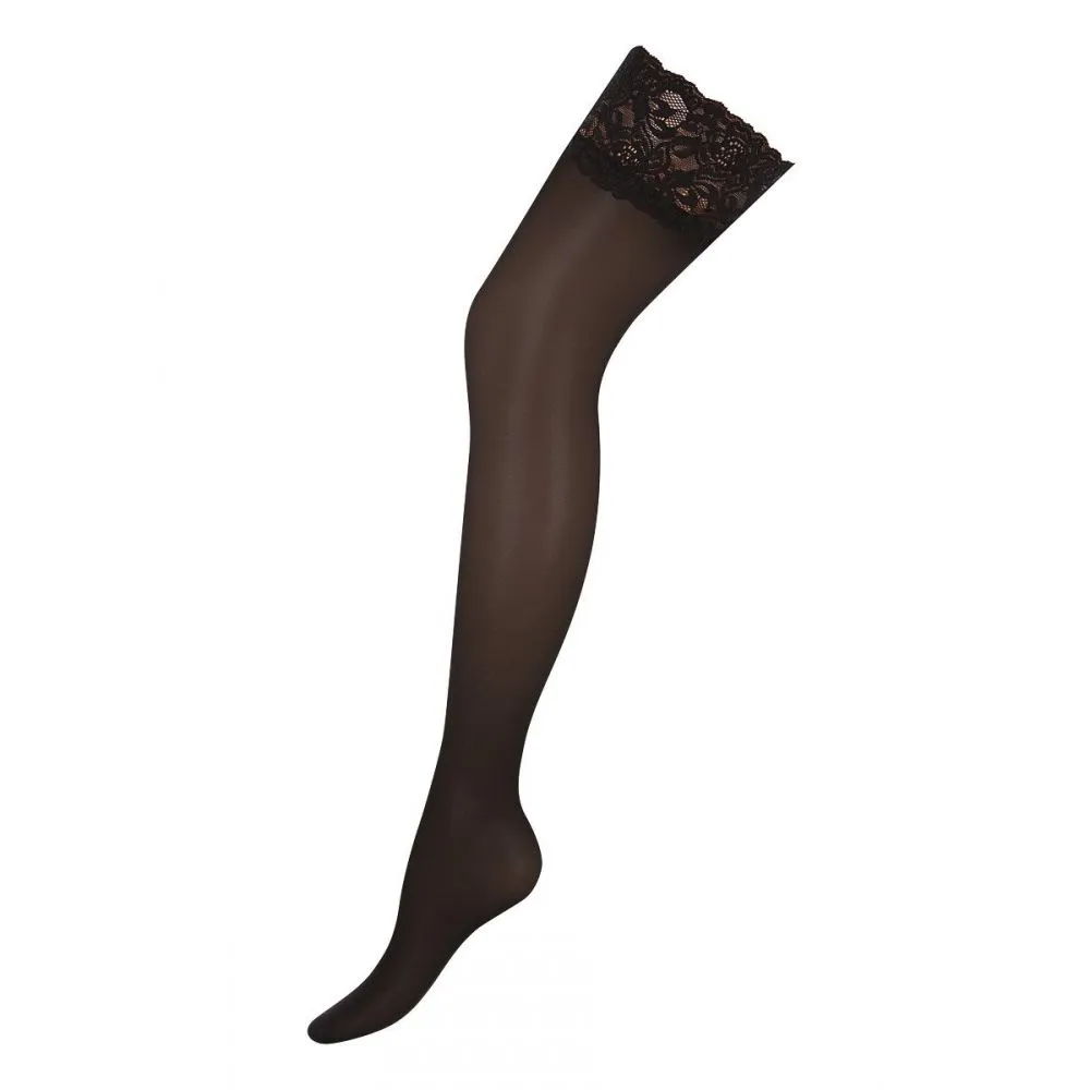 Шелковистые матовые женские чулки Affetto с плотностью 40 den и кружевной резинкой на силиконовой основе.