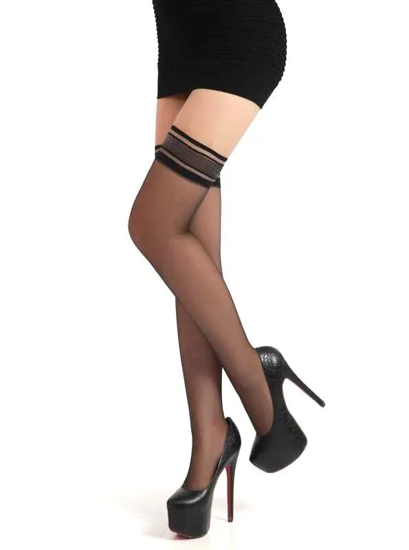 Классические чулочки с очень удобной резинкой на силиконе. Они изящно подчеркивает форму ног и придают дополнительный шарм вашему облику. Резинка состоит из трех полосок разной ширины. Поверхность ткани на ногах не имеет узоров и красиво матирует кожу, придавая ей соблазнительный вид.