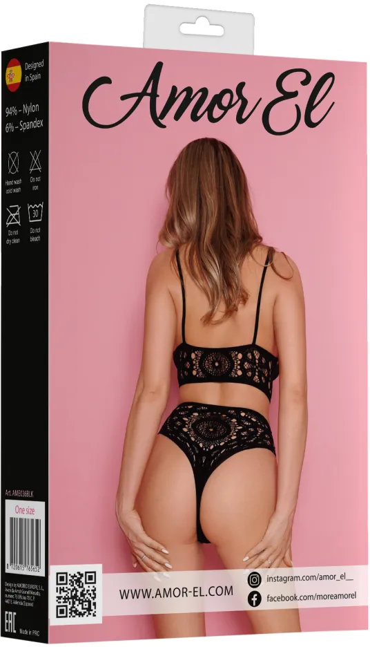 Комплект соблазнительного белья, состоящего из топа и трусиков, украшенных узором в виде калейдоскопа.