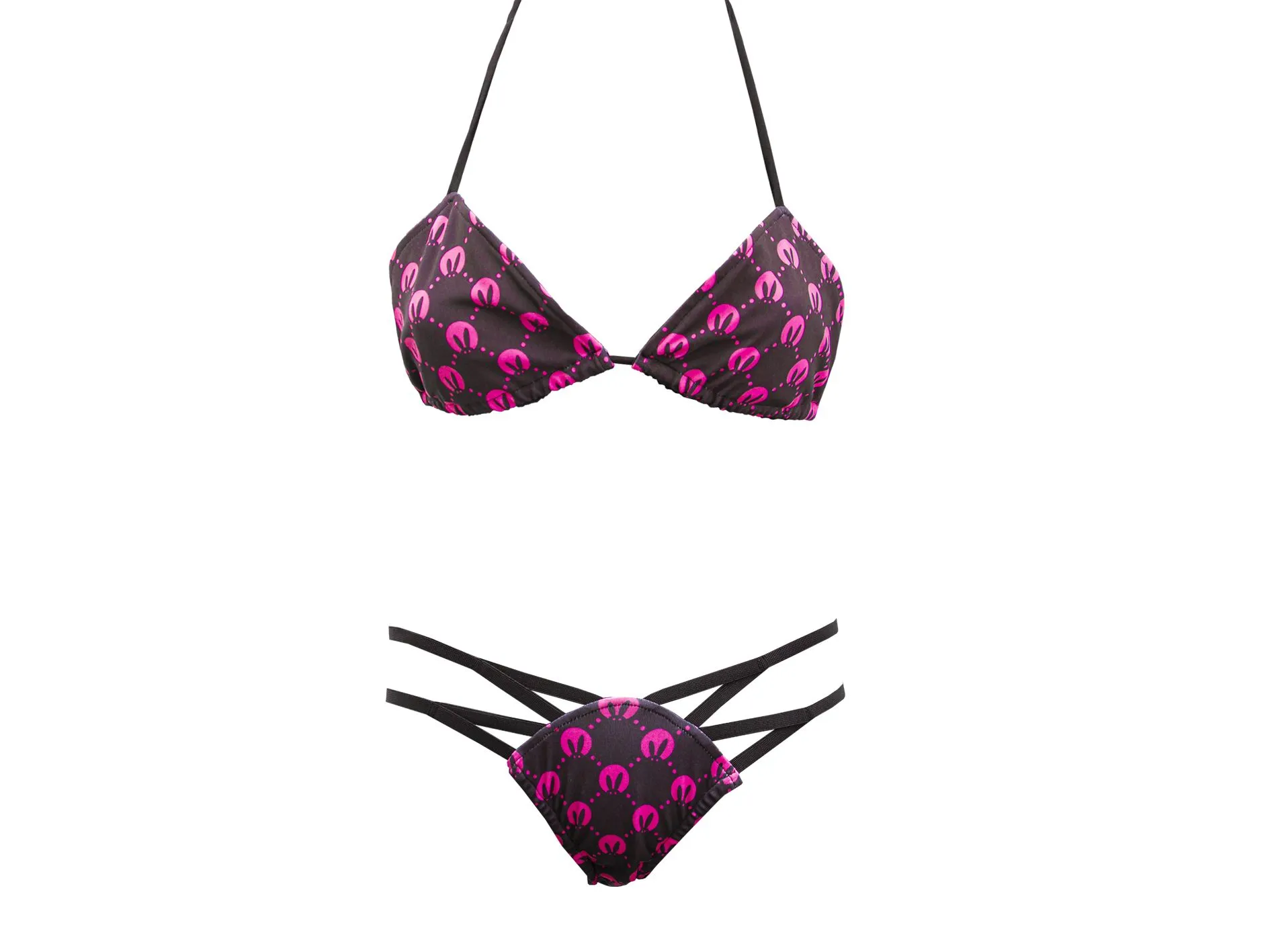 —Купальник-бикини женский PinkRabbit черно-розовый с паттерном
