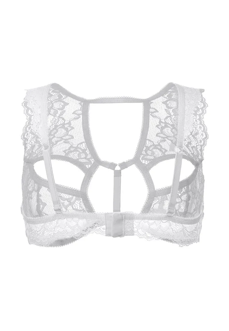 Бралетт. Мягкий кружевной топ с декоративными вырезами и перемычками. Регулируемые бретели. Двухрядная застежка на спине.