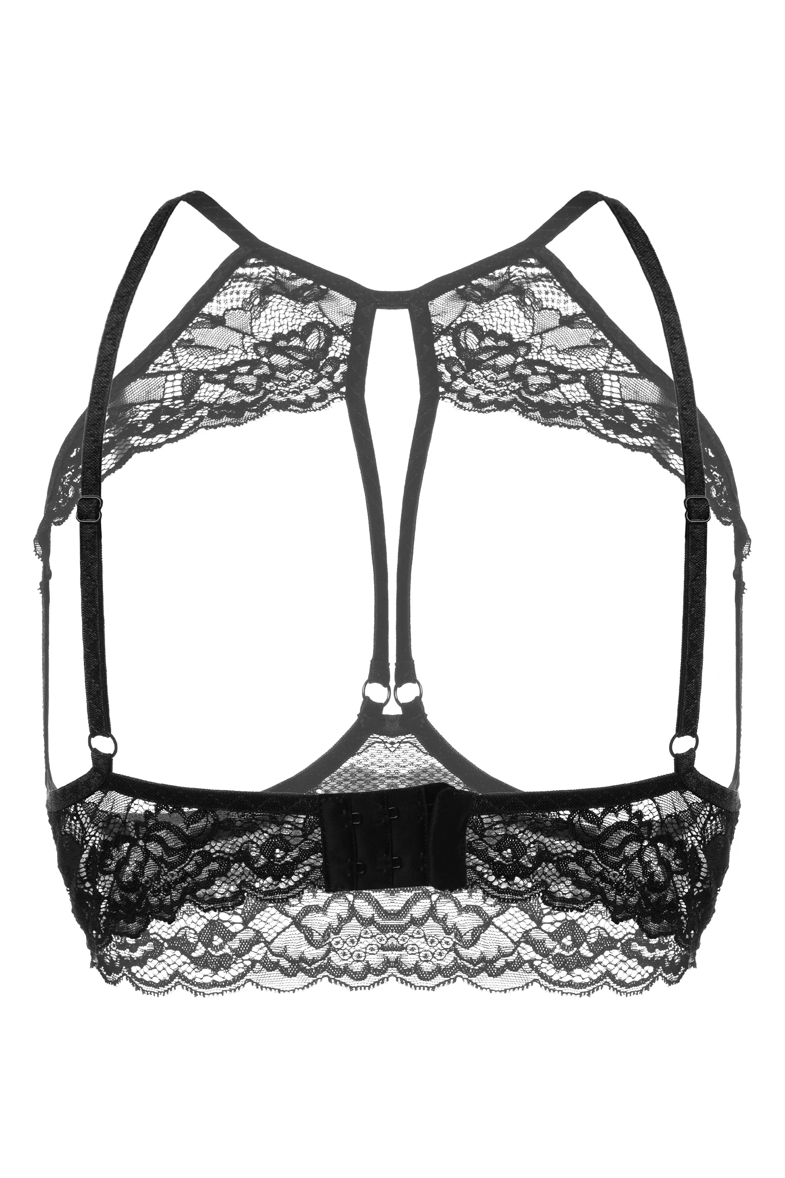 Эротический бралетт Erolanta Sandra с открытой грудью кружевной, черный (46-48) в пакете
