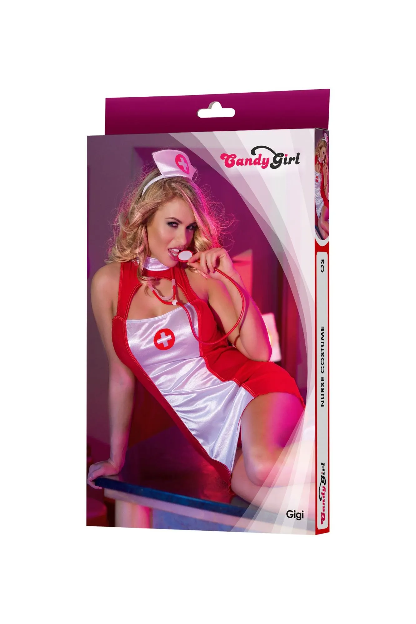 Эффектное платье медсестры Candy Girl® Gigi с открытой спиной и воротником-стойкой на ''липучке'' – лучший наряд для оказания неотложной сексуальной помощи. Ободок и игрушечный стетоскоп помогают перевоплотиться в образ в считанные секунды.