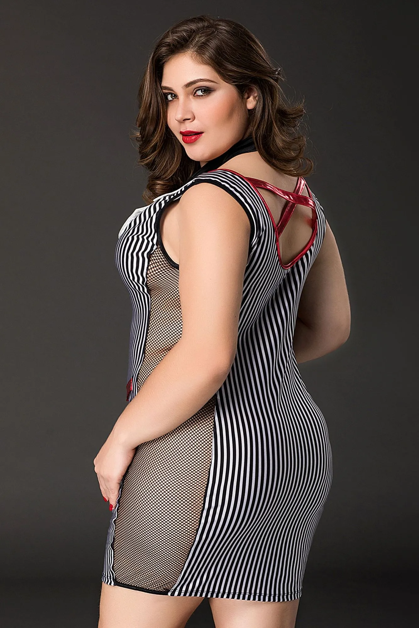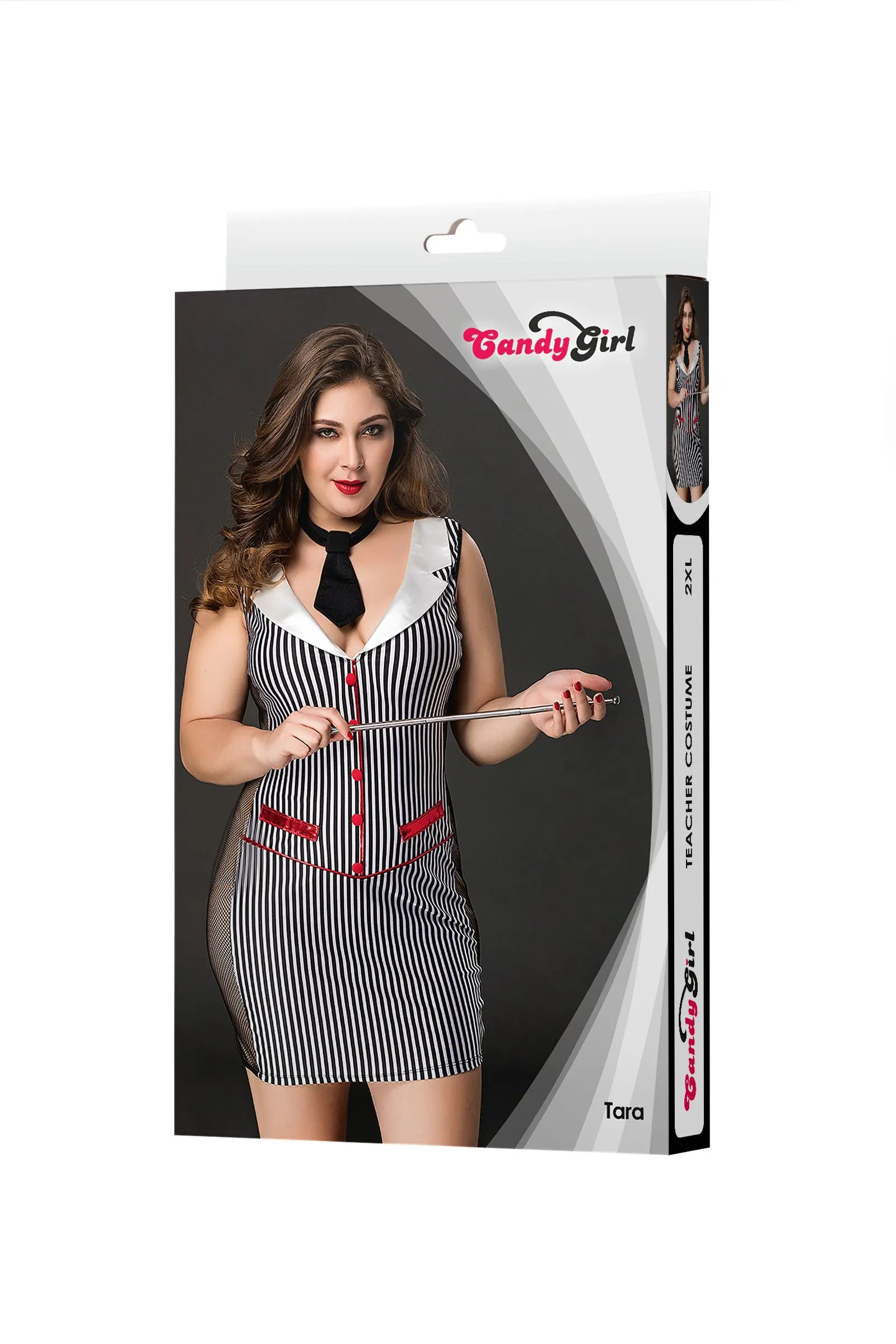 —Костюм учительницы Candy Girl Tara (платье, стринги, галстук, указка) черно-белый, 2XL