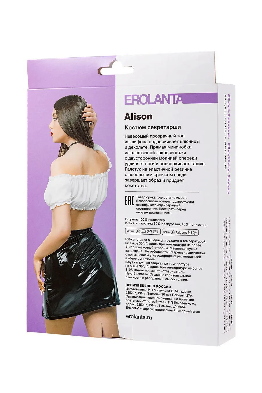 Соблазнительный костюм секретарши Erolanta® Alison выполнен в классической черно-белой гамме и включает в себя: мини-юбку, укороченный топ и игривый галстучек.