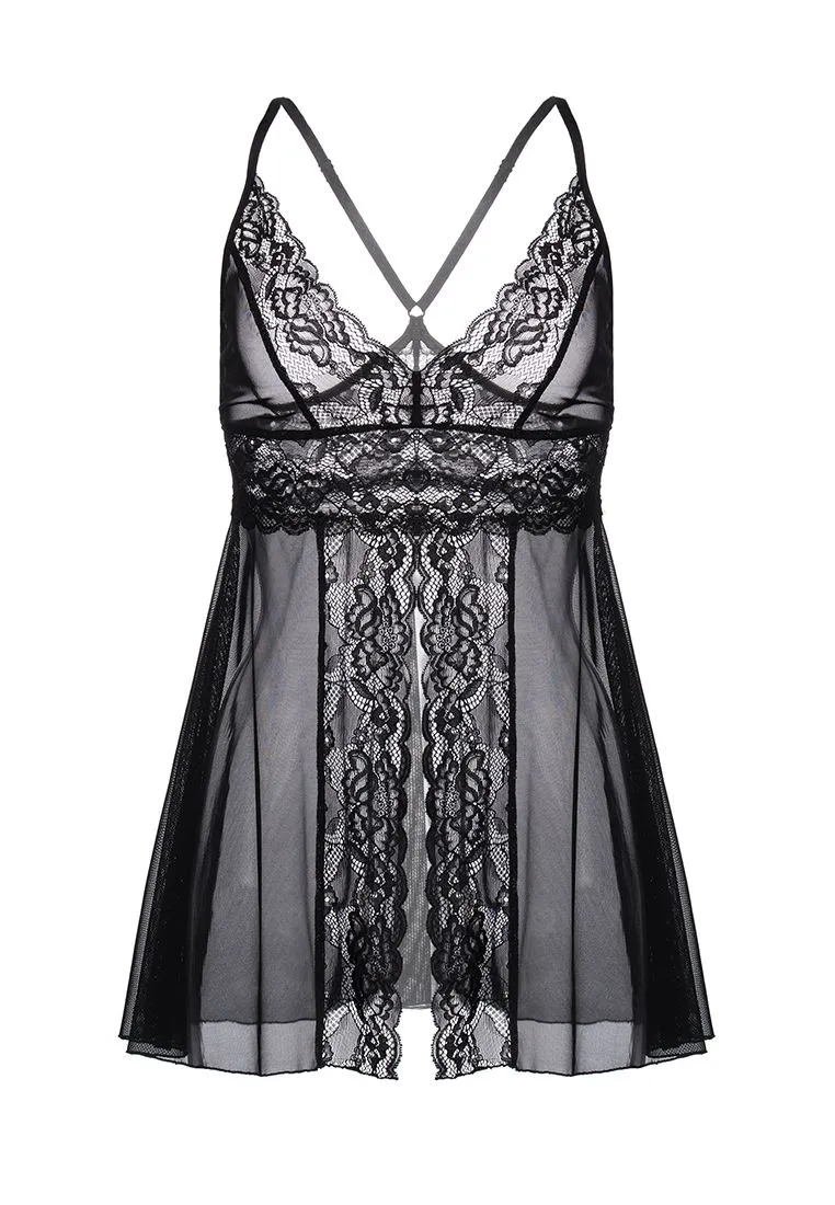 Комбинация Nataliya от Erolanta® с V-образным декольте и манящим разрезом спереди — неприлично роскошный вариант для эффектного соблазнения. Силуэт бэби-долл придает образу легкость и очаровательную наивность. Эластичная прозрачная сетка в сочетании с нежным кружевом интригующе подчеркивает сексуальность женского тела. Глубокий вырез на груди и провокационный разрез спереди приковывают внимание. Тонкие регулируемые бретели и кружево изящно обрамляют спину. Комбинация Erolanta® Nataliya — для особенных ночей. *Допускается замена кружева на аналогичное.