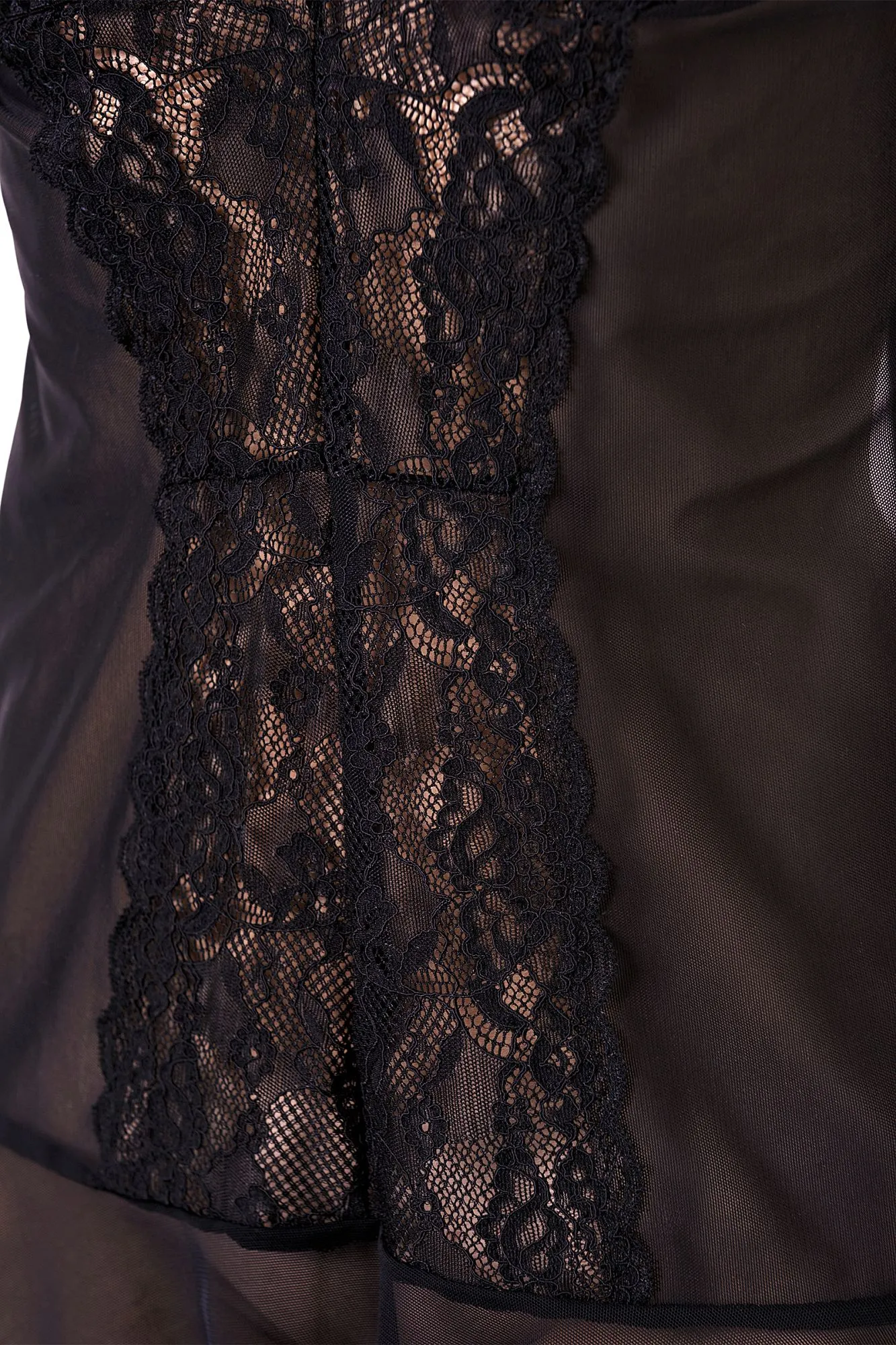 Комбинация Erolanta® Margarita с открытой грудью, из эластичной сетки со вставками кружева. Бюст и подол декорированы мягкими оборками. Регулируемые бретели. *Допускается замена кружева на аналогичное.