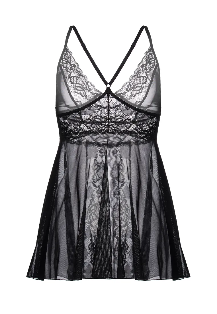 Комбинация Nataliya от Erolanta® с V-образным декольте и манящим разрезом спереди — неприлично роскошный вариант для эффектного соблазнения. Силуэт бэби-долл придает образу легкость и очаровательную наивность. Эластичная прозрачная сетка в сочетании с нежным кружевом интригующе подчеркивает сексуальность женского тела. Глубокий вырез на груди и провокационный разрез спереди приковывают внимание. Тонкие регулируемые бретели и кружево изящно обрамляют спину. Комбинация Erolanta® Nataliya — для особенных ночей. *Допускается замена кружева на аналогичное.