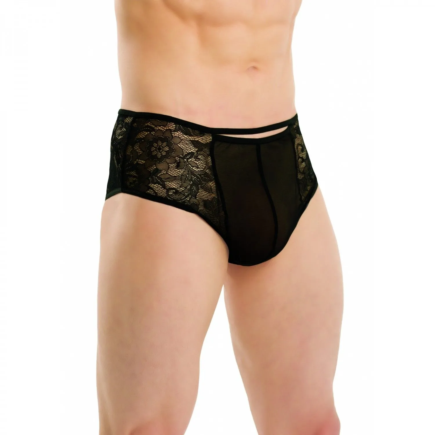 Мужские трусики с кружевными вставками по бокам приятны на ощупь, не изменяют форму после многократных использований.
