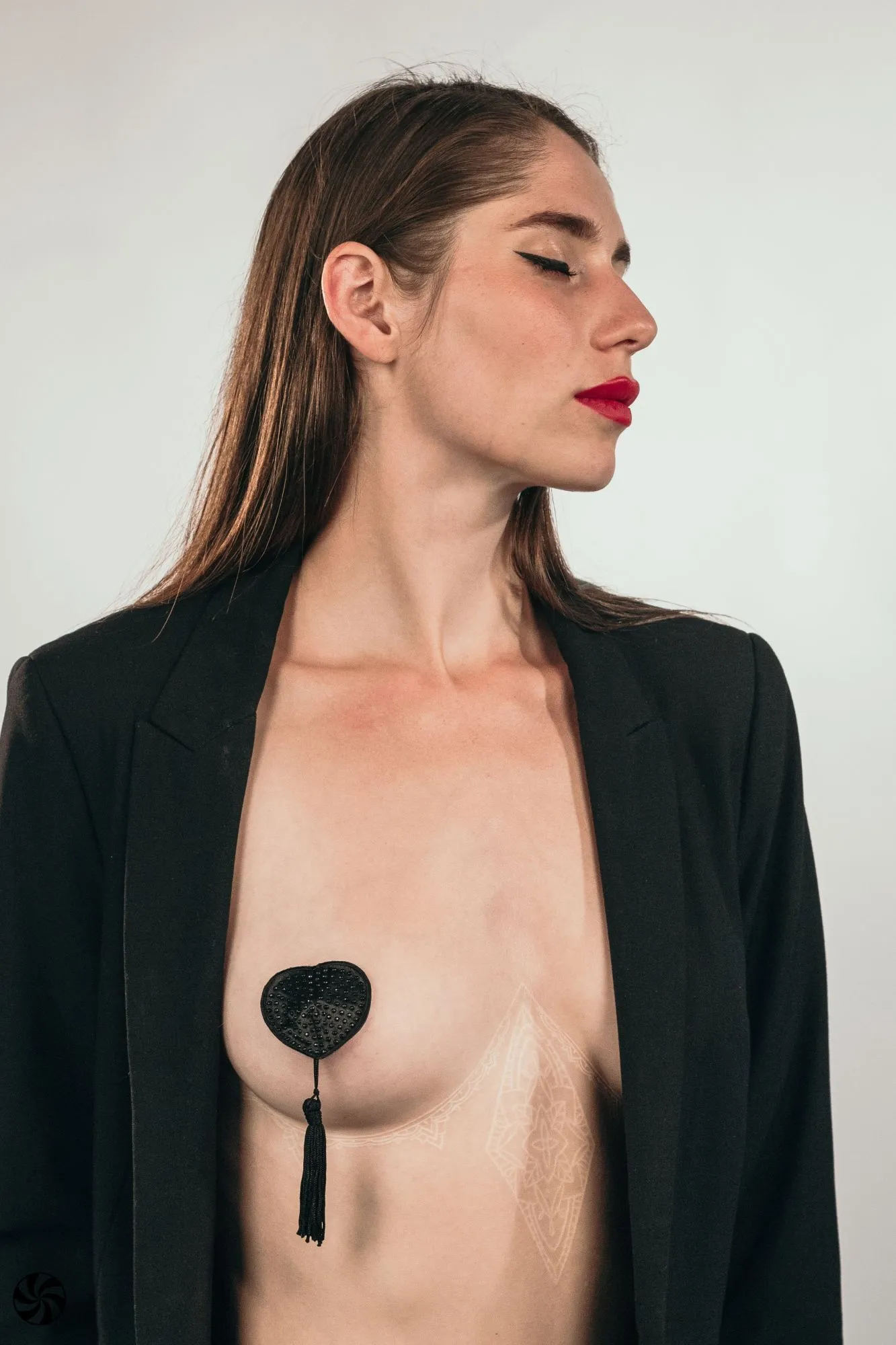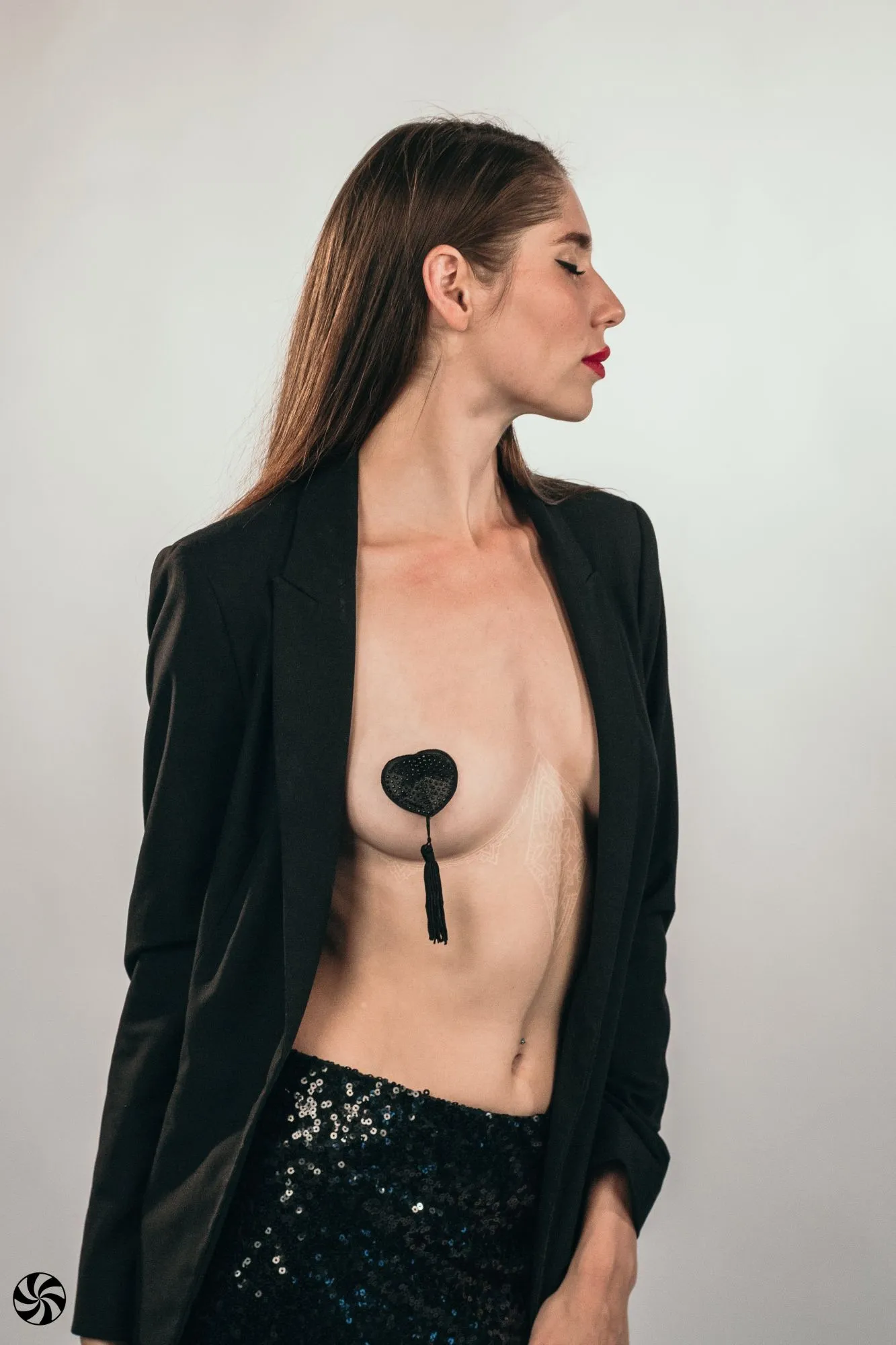 Пэстисы Evans имеют внутреннюю сторону с клейким слоем, который позволит c  легкостью надеть и снять аксессуар.  Пэстисы можно использовать для эротических игр или в дополнение к образу на вечеринку. Подходят для многоразового использования.