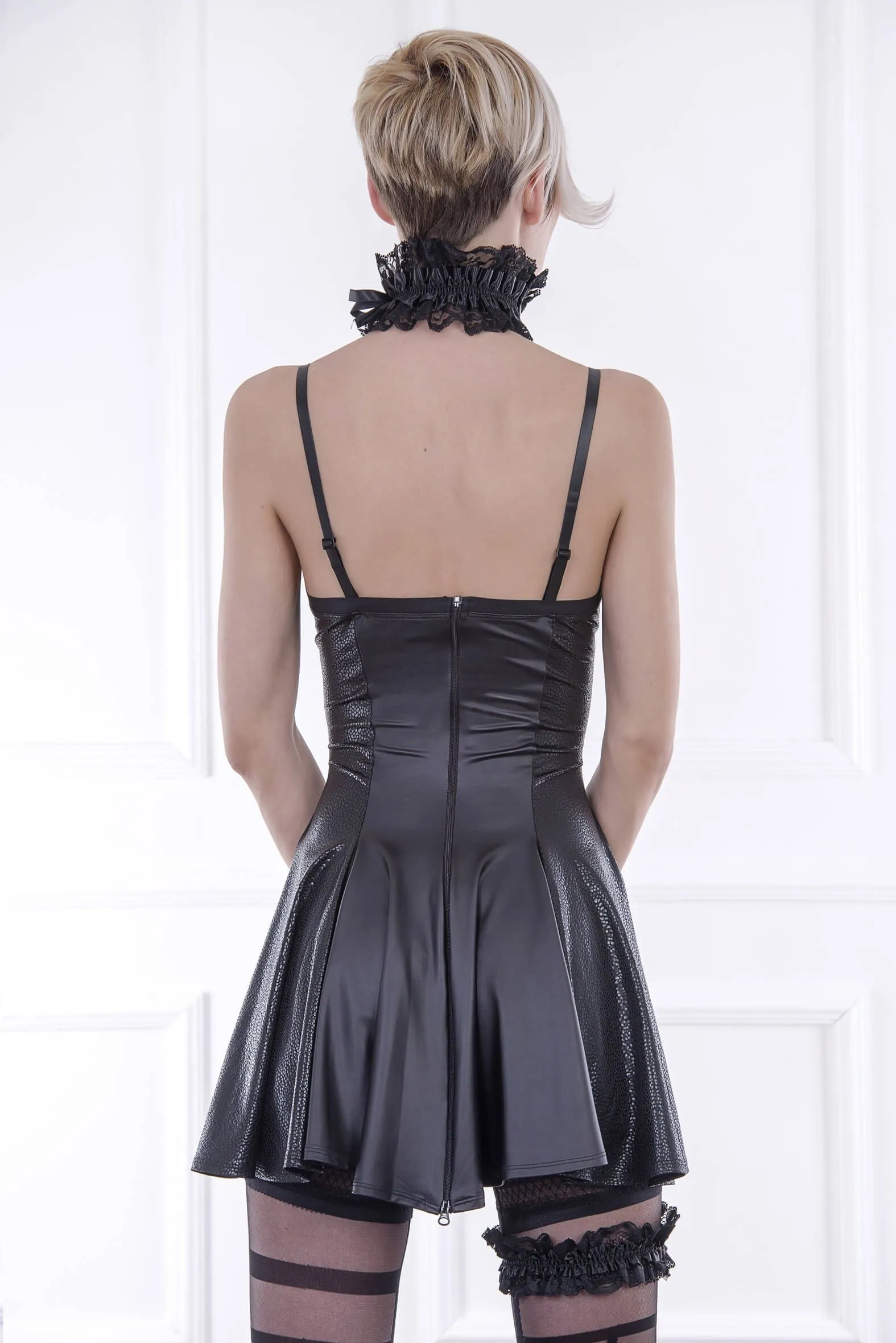 Изысканное платье Maddington из коллекции Tome 13 от французского дизайнера Patrice Catanzaro изготовлено из материала, имитирующего мокрую кожу, и вставок по бокам с имитацией змеиной кожи. Благодаря вертикальным швам платье визуально удлиняет силуэт и делает его более стройным. А воздушная короткая юбка при каждом Вашем движении будет акцентировать внимание на Ваших прекрасных ножках.