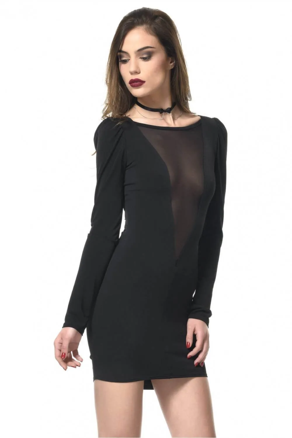 Элегантное платье с длинными рукавами Kitty из коллекции Les P'tites Folies от французского дизайнера Patrice Catanzaro выполнено из сочетания тонкого черного материала и мелкой сетки. На первый взгляд дизайн платья кажется достаточно лаконичным, однако это впечатление обманчиво, ведь особой пикантности наряду придает вставка из прозрачной сетки на спине, приобнажающая ягодицы. Также платье будет отлично облегать тело, подчеркивая достоинства Вашей фигуры и плавно очерчивая все ее соблазнительные изгибы.