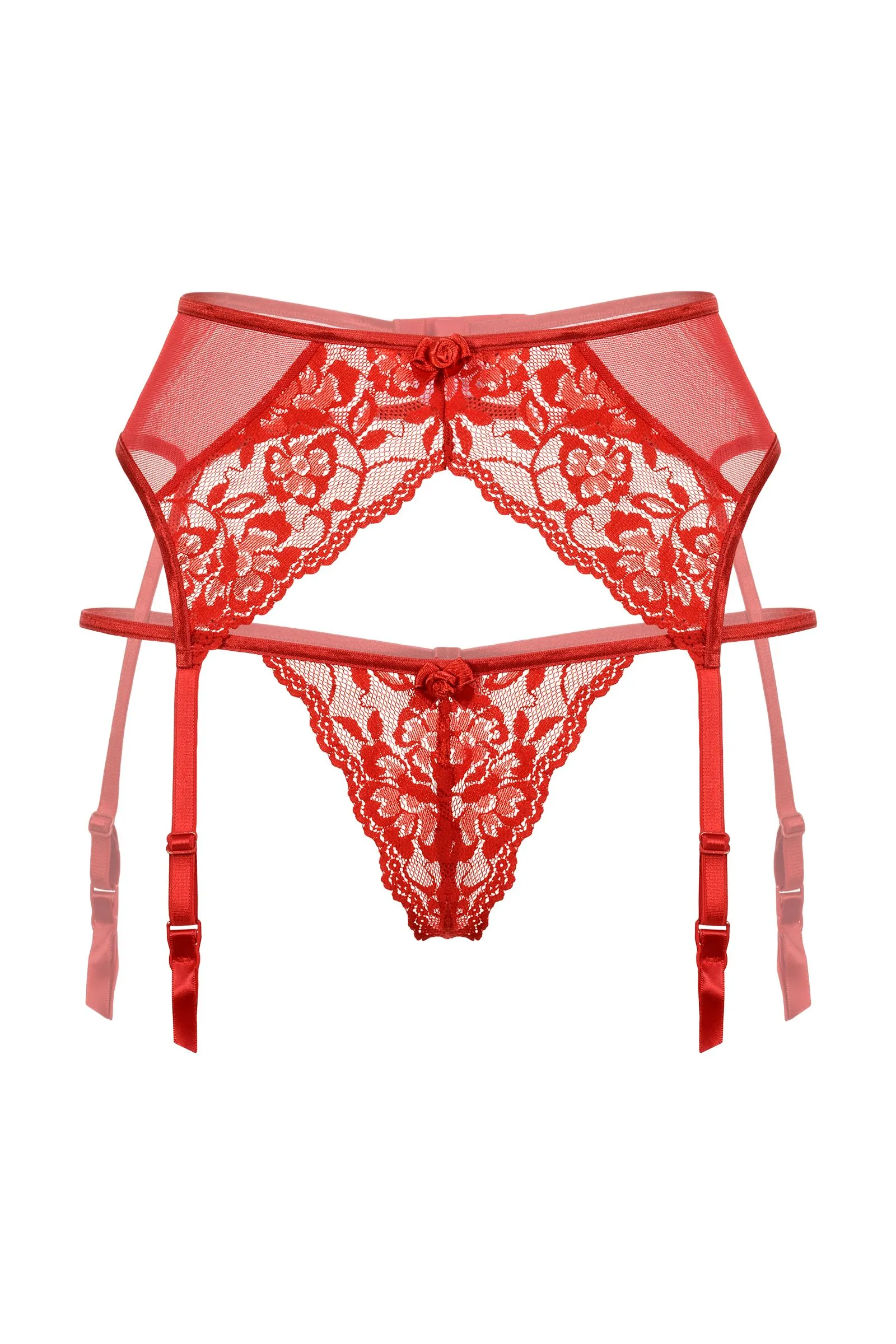 —Пояс для чулок и стринги кружевные SoftLine Collection, красный, S/M