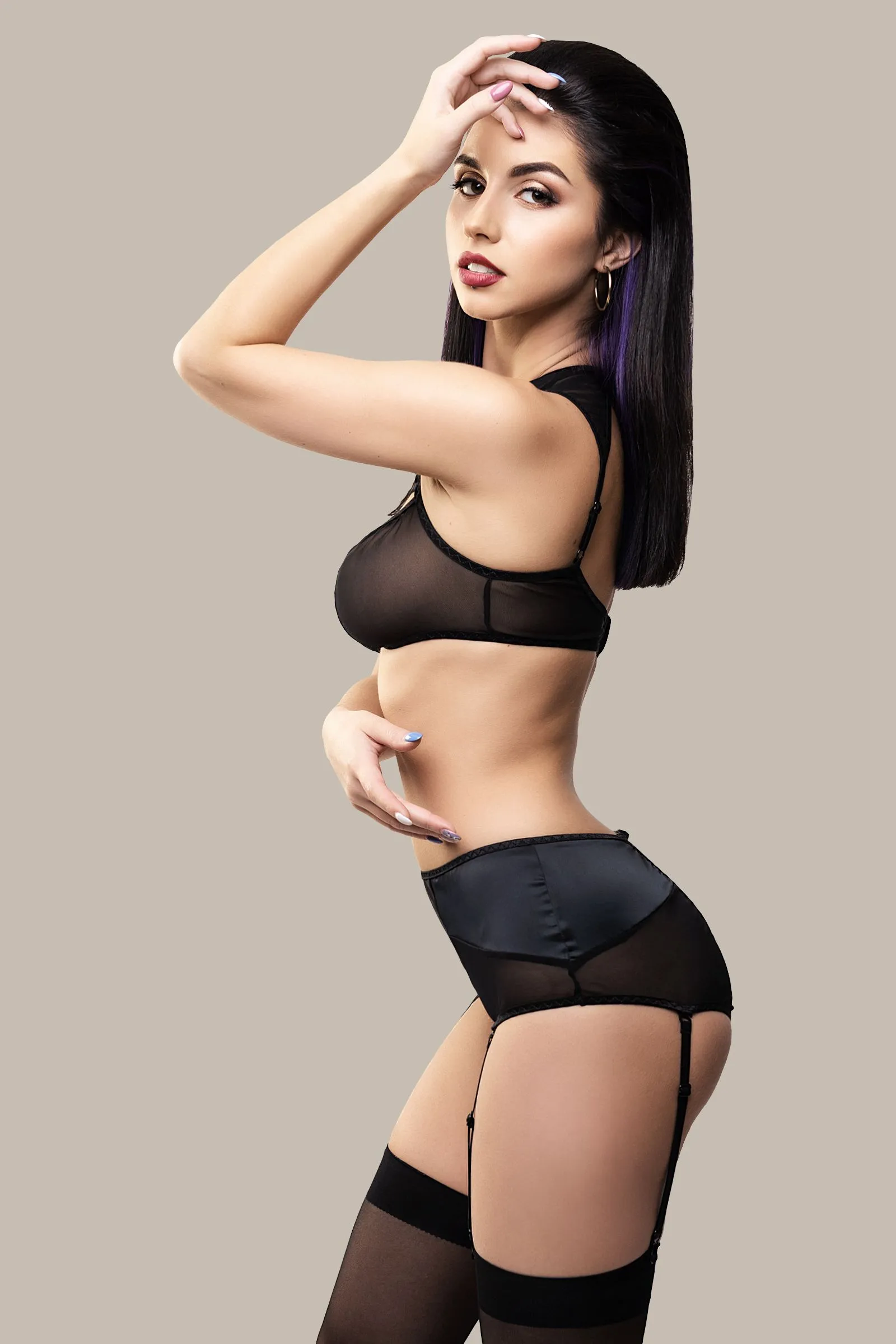 Линия провокационного эротического белья WANAME® Apparel – для женщин, которые хотят наслаждения и не скрывают этого. Эротические трусики-пояс для чулок «Э́лэгэнс» (англ. Elegance – «Элегантность») из тонкой прозрачной эластичной сетки и стрейч-сатина облегают бедра, ощущаются невесомыми, не сковывают движений, но визуально меняют силуэт. Шелковистая поверхность материала дарит приятные ощущения при прикосновении. Современные элементы дизайна тешат женское самолюбие. Трусики с высокой талией зрительно удлиняют ноги, подчеркивают сексуальный переход от талии к бедрам. Непрозрачные вставки скрадывают объем в области бедер. Швы, вытачки и регулировка по талии создают силуэтную посадку. Съемные регулируемые пажи, открытая зона копчика и эротический доступ подчеркивают чувственный образ. Модели белья Waname® Apparel эксклюзивны, разработаны и произведены в России с учетом предпочтений российских покупательниц. *Чулки в комплект не входят. На фото и видео трусики-пояс Waname® Elegance дополнены браллетом Waname® Delicacy.