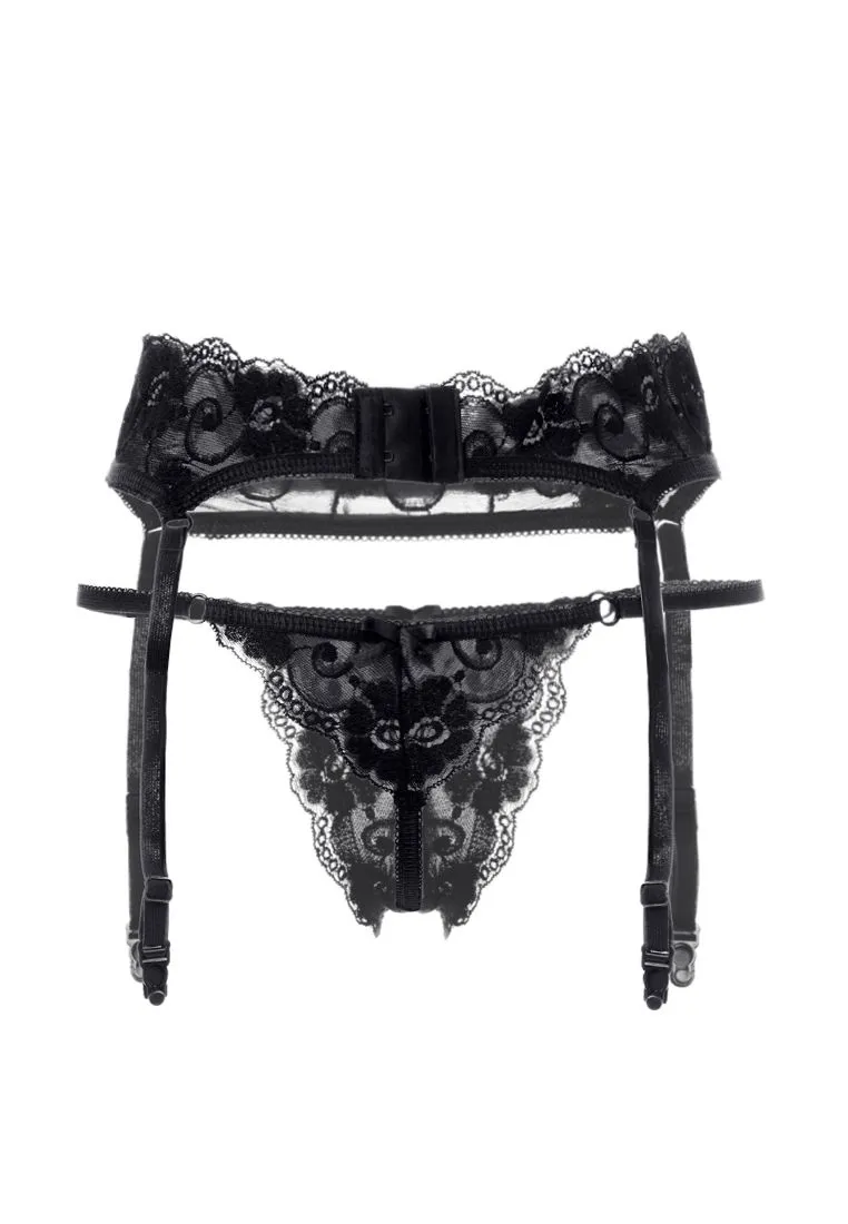 —Комплект Erolanta Tatyana: пояс для чулок и стринги, черный 50-52
