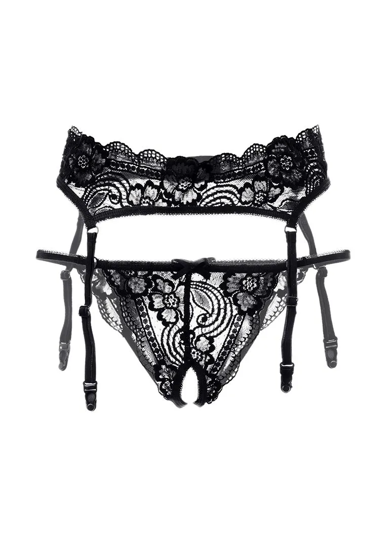 —Эротический комплект Erolanta Deborah: пояс для чулок и трусики, черный 50-52