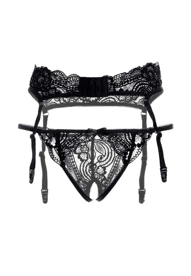 Эротический комплект Erolanta® Deborah: пояс для чулок и трусики, эластичные, кружевные, с ажурным краем. Трусики с атласными бантиками. Пояс с регулируемой застежкой и пажами. *Допускается замена кружева на аналогичное. Чулки в комплект не входят. На видео комплект Erolanta® Deborah дополнен идеально сочетающимся бралеттом Erolanta® Marisa.