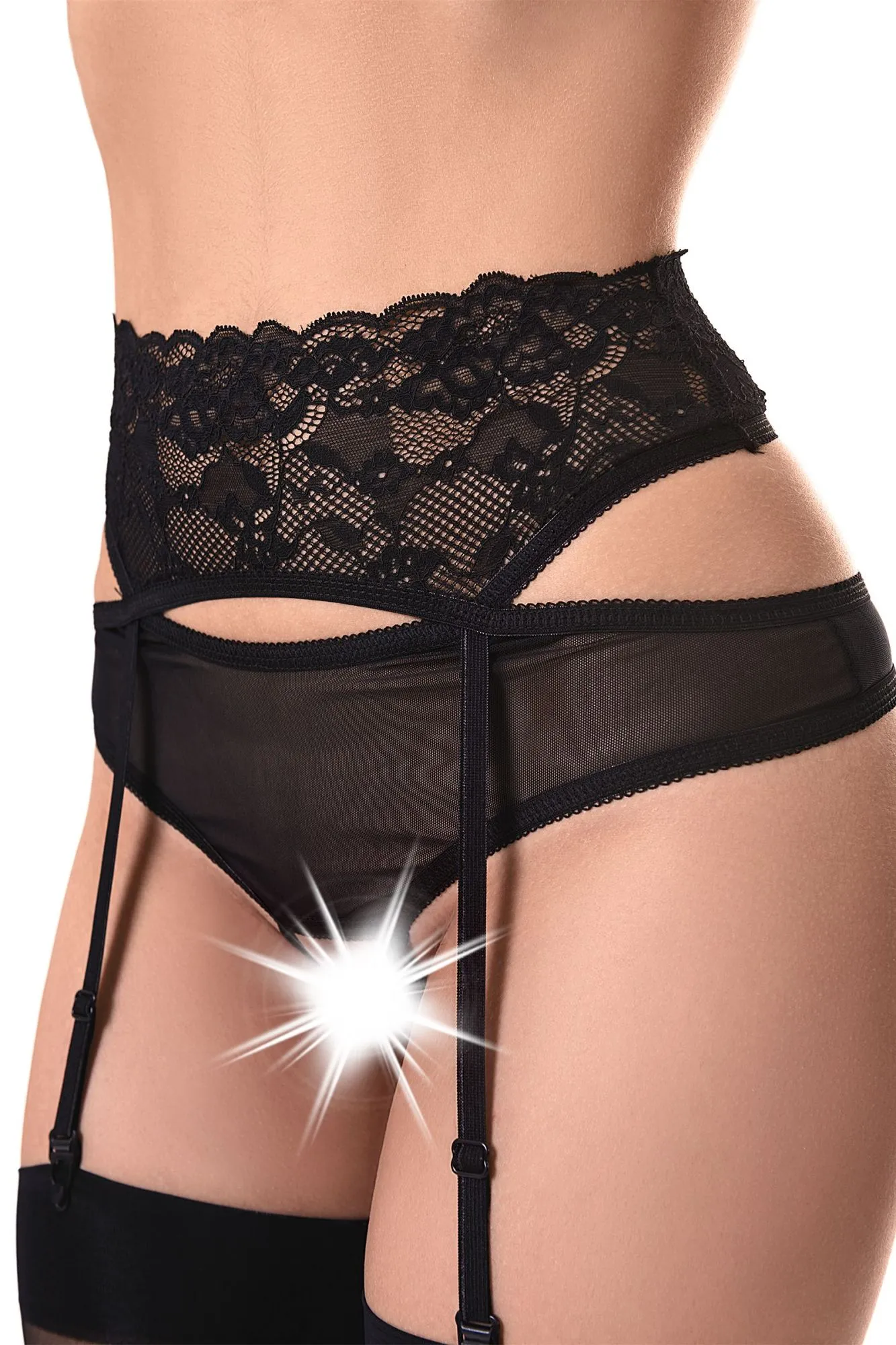 Эротические трусики-пояс для чулок Erolanta® Marianne из эластичной сетки со вставками кружева, с декоративными вырезами. Имитация пояса со свободным ажурным краем. Высокая посадка. Регулируемые пажи. *Допускается замена кружева на аналогичное. Чулки в комплект не входят. На видео трусики-пояс Erolanta® Marianne дополнены идеально сочетающимся бралеттом Erolanta® Marisa.