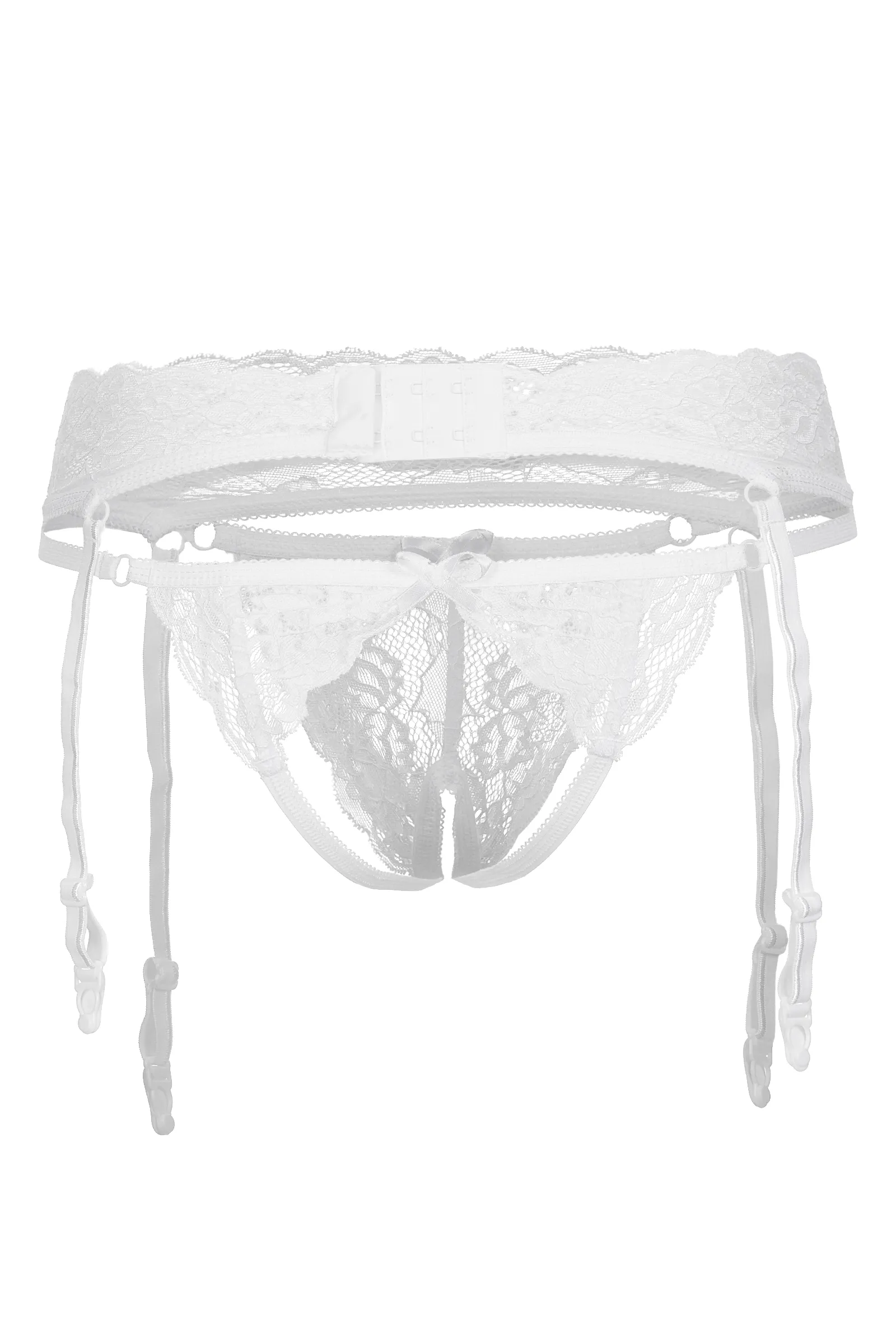 Эротический комплект Erolanta® Deborah: пояс для чулок и трусики, эластичные, кружевные, с ажурным краем. Трусики с атласными бантиками. Пояс с регулируемой застежкой и пажами. *Допускается замена кружева на аналогичное. Чулки в комплект не входят. На видео комплект Erolanta® Deborah дополнен бралеттом Erolanta® Odette.