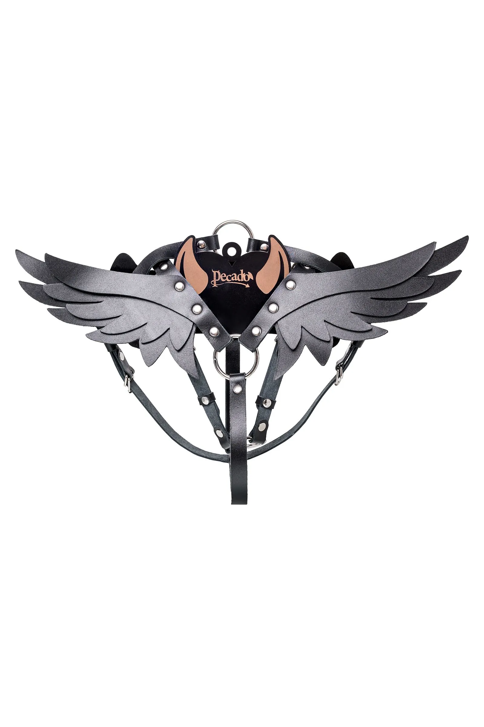 Изящная портупея с сексуальными крылышками от Pecado создана для всех любителей властвовать и подчиняться. Девайс для ролевых игр изготовлен полностью из натуральной черной кожи. Портупея тактильно приятная, плотно прилегает и комфортно сидит на теле. Благодаря использованию экологичного материала ремешки не тянутся и не деформируются. Аксессуар декорирован металлической фурнитурой высокого качества. Надежная пряжка комфортно регулирует портупею под необходимый размер. А оригинальные крылышки придают дерзкий настрой атрибуту. Подходит для ношения как на голое тело, так и поверх нижнего белья. Только для тех, кто любить серьезные игры для взрослых. ● 100% натуральная кожа. ● Ручная работа. ● Износостойкий, тактильно приятный материал. ● Надежная высококачественная фурнитура. ● Элементы портупеи несъемные.