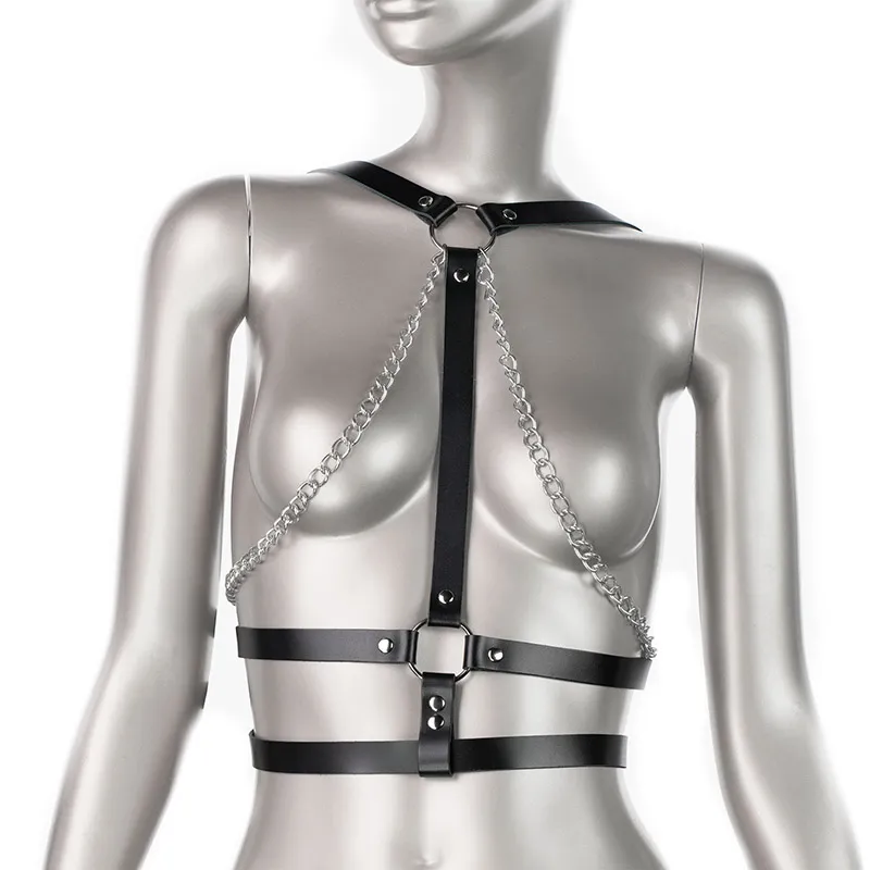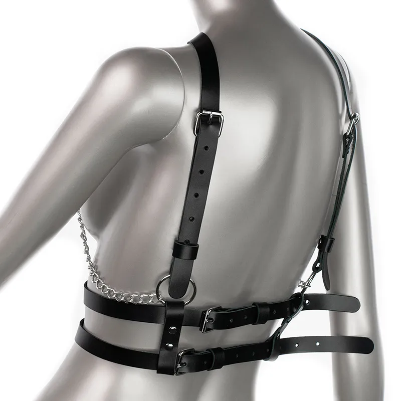 Женская портупея "Сесиль" от компании Passion Belts прекрасно дополнит любой образ, которому хочется придать особый стиль и воинственность. Портупея создана из нескольких ремней, соединенных между собой при помощи металлических колец. Также она декорирована тонкой цепочкой, которая будет красиво ниспадать на спину. Аксессуар можно носить как в повседневной жизни поверх одежды, так и сделать его пикантной деталью своего ролевого интимного костюма.