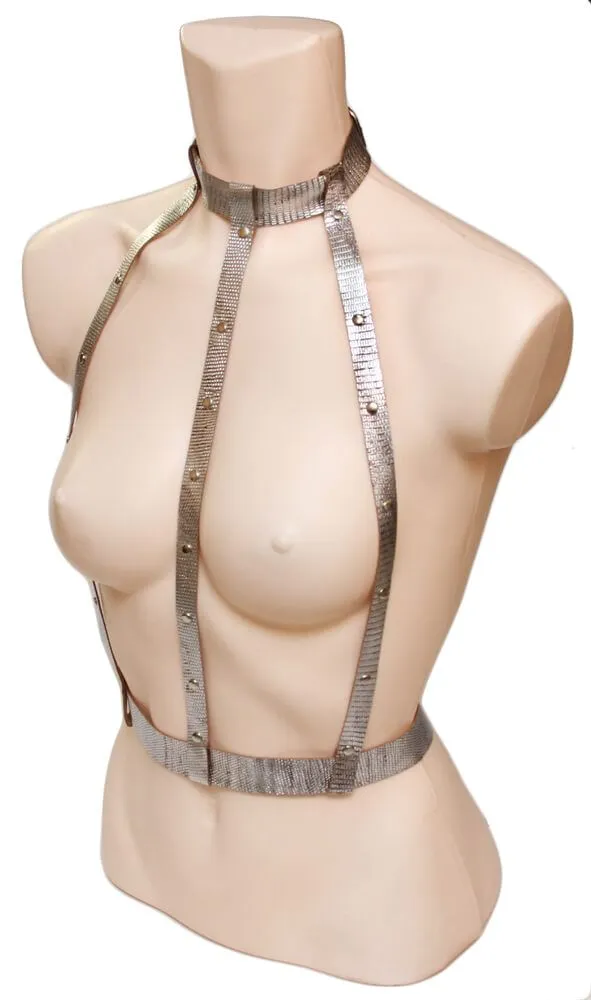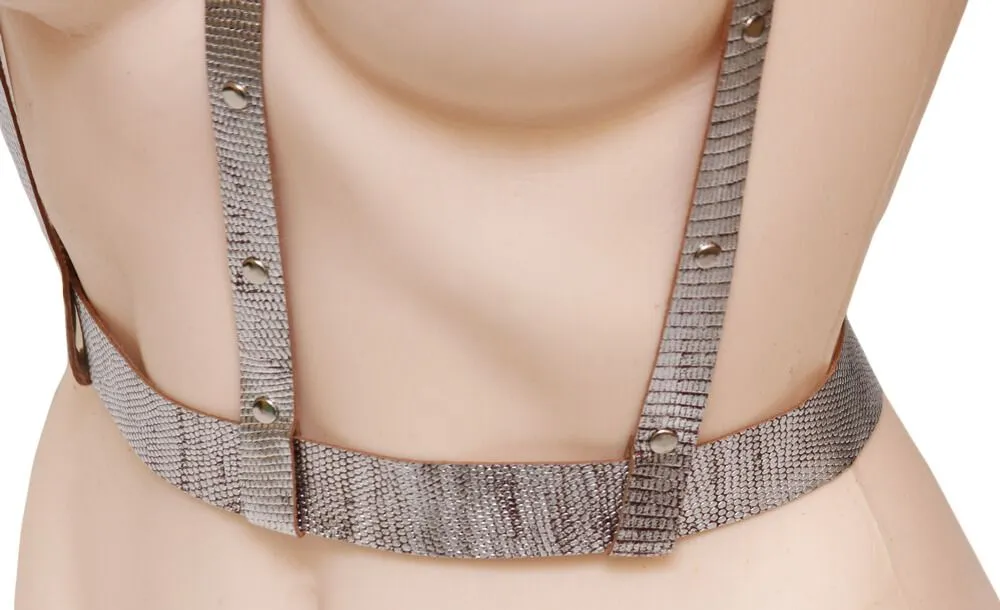 Элегантная в своей простоте серебристая портупея подчеркнет Ваш неповторимый стиль и добавит образу дерзости. Данный аксессуар можно носить как в повседневной жизни поверх одежды, так и во время ролевых игр для создания необходимой атмосферы.