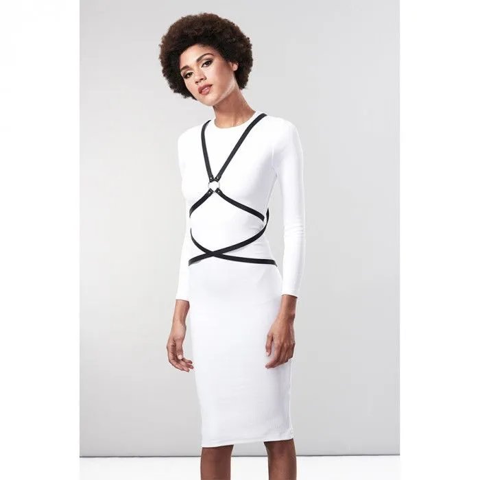 Элегантная портупея Multi-Way Body Harness из серии Maze от бренда Bijoux Indiscrets выполнена из искусственной кожи. Ее дизайн, заключающий в себе чувственность и силу бондажных аксессуаров, был вдохновлен классическим БДСМ. Портупея сочетает в себе современные модные тенденции и классическую эротичность. Вы сможете носить портупею поверх одежды со своими любимыми нарядами, или же поверх нижнего белья или на голом теле во время ролевых игр с элементами БДСМ. С таким аксессуаром Вы сможете создать необходимую атмосферу в спальне и подчеркнете свою дерзкую натуру. Портупея регулируется по размеру.