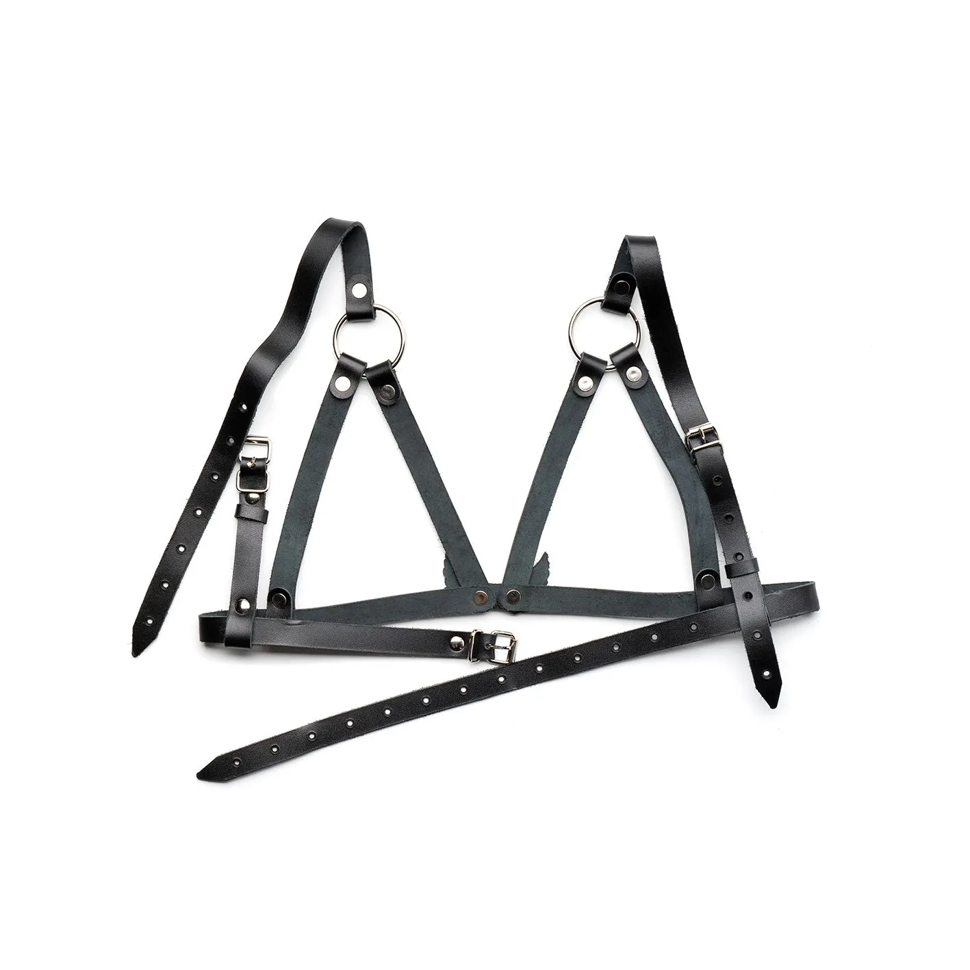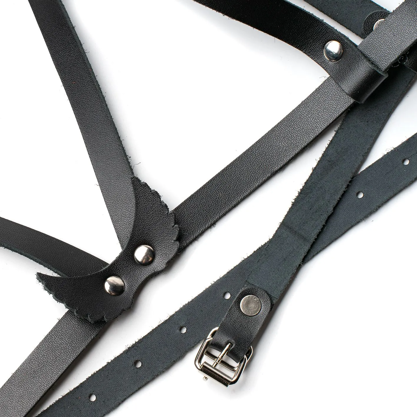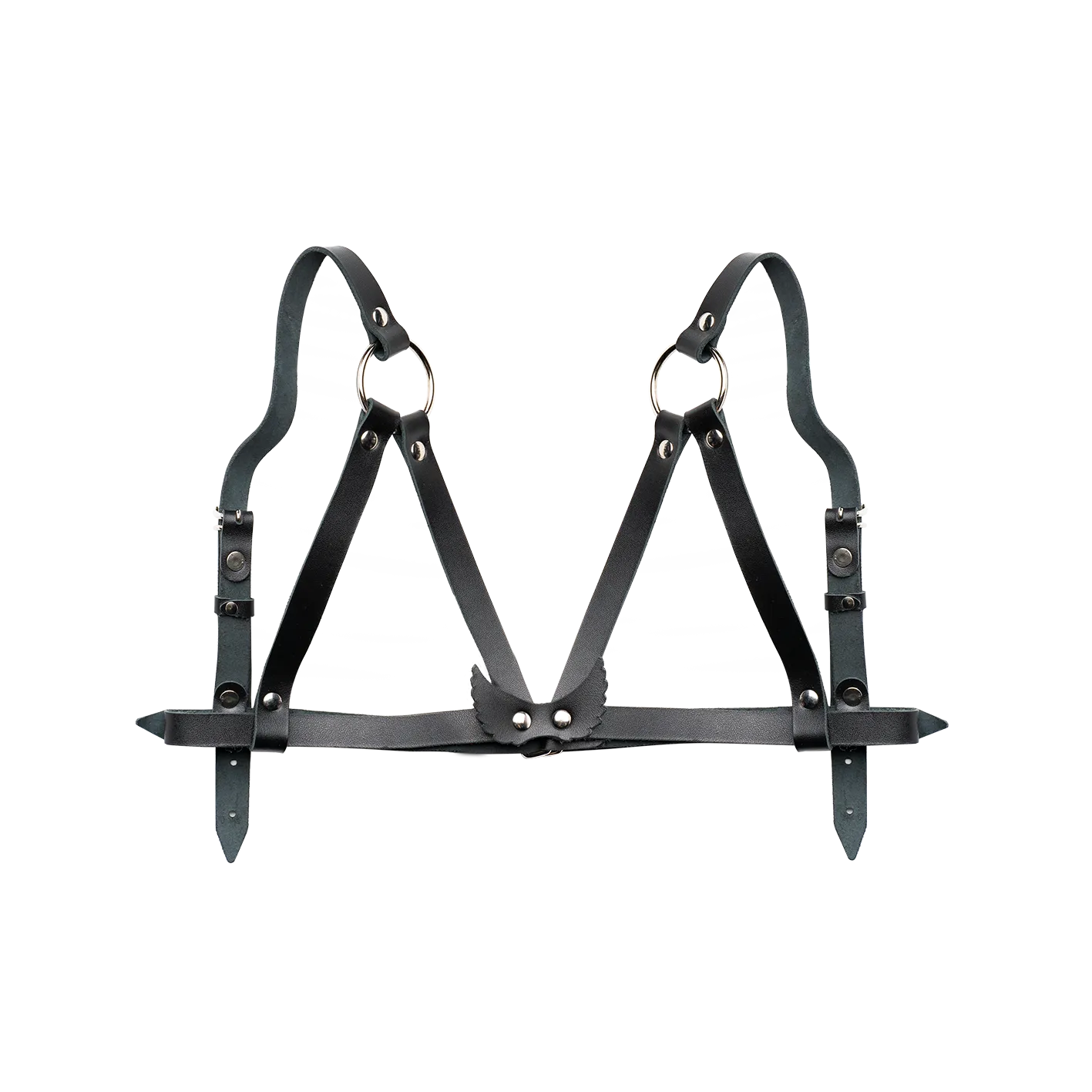 Женская портупея прекрасно дополнит ваш ролевой костюм, придавая ему воинственности. Выполнена из нескольких ремней, соединенных между собой при помощи металлических колец. Аксессуар можно носить как в повседневной жизни поверх одежды, так и сделать его пикантной деталью своего ролевого интимного костюма. При помощи металлических пряжек и регуляторов можно подогнать под любую фигуру.