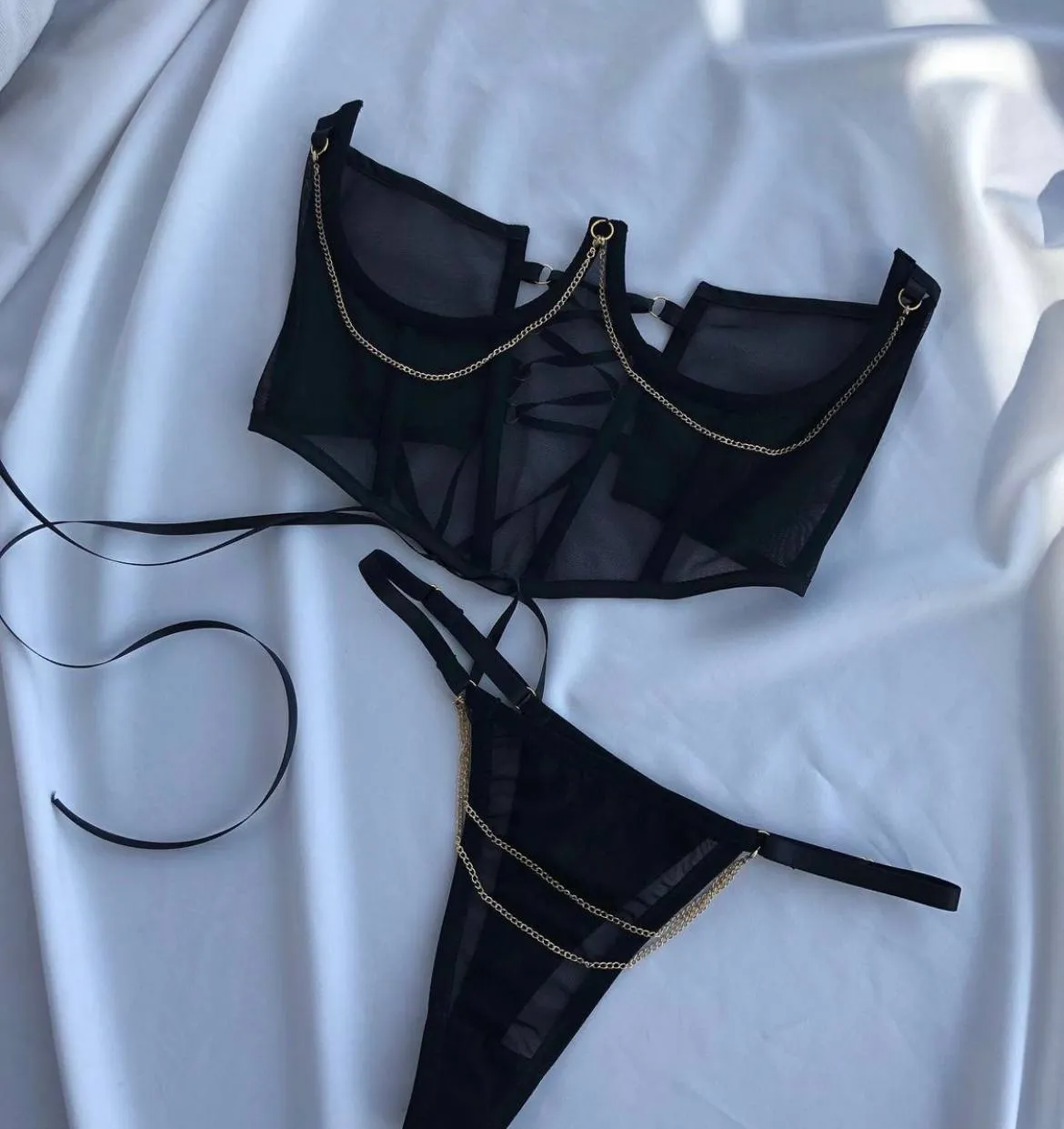Стринги со съемной цепочкой, черные