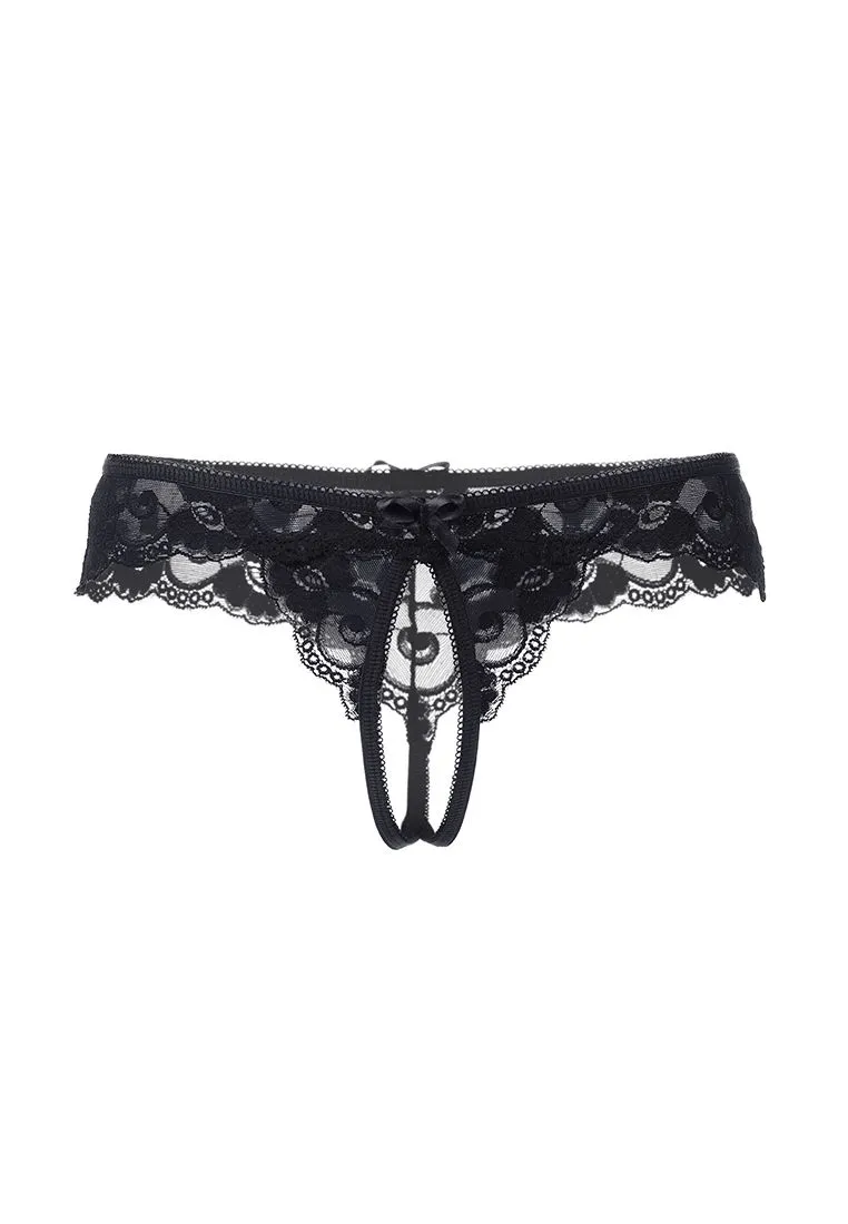 Эротические трусики Erolanta® Madison кружевные, эластичные, со свободным ажурным краем. Спереди декорированы атласными бантиками. *Допускается замена кружева на аналогичное. На видео трусики Erolanta® Madison дополнены бралеттом Erolanta® Erin.