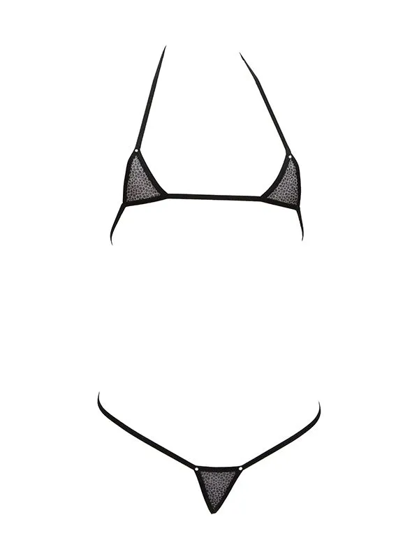 Мини-бикини Foly, серебрянный лео на сетке
