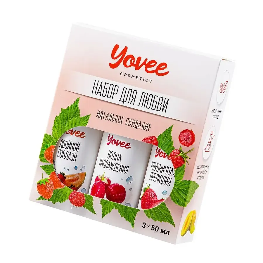 "Набор для любви" от бренда Yovee идеально подходит для эротических экспериментов. В одной упаковке три съедобных, увлажняющих геля на водной основе. Первый обладает сочным вкусом и ароматом малины, второй - соблазнительной клубники, третий - клубничной нежностью с волнующими нотами дыни. Используйте самостоятельно или создайте свой вкус, смешивая их! Несмотря на сладость, гели не содержат сахара в составе, не нарушают микрофлору и pH-баланс. Подходят как для вагинального, так и для орального секса. Совместимы со всеми видами презервативов и игрушек для взрослых.