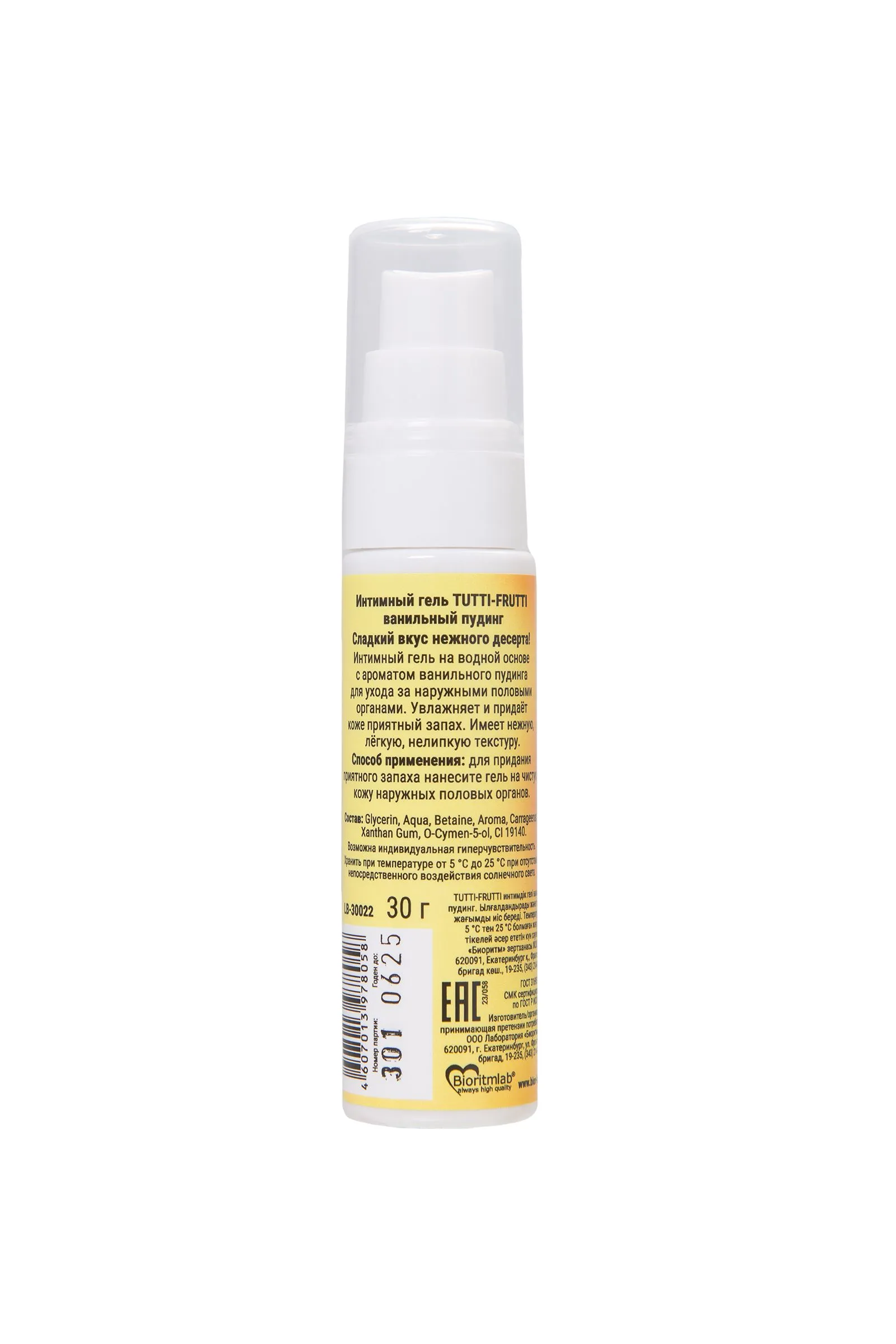 Откройте для себя новый уровень интимного удовольствия с оральным гелем Tutti-Frutti ванильный пудинг! Этот продукт станет настоящим разнообразием в вашей интимной жизни, придавая ей насыщенность и ощущение полного блаженства. Сладкий вкус и аромат ванильного десерта, присущие этому гелю, подарят новую страсть и сильное волнение в ваших любовных играх! Гель Tutti-Frutti ванильный пудинг обладает нежной консистенцией, которая легко наносится на кожу, не вызывает липкости и обеспечивает приятное скольжение. Он прекрасно увлажняет интимные зоны, создавая комфорт и сохраняя естественный баланс. Кроме того, он не нарушает микрофлору интимных зон, обеспечивая здоровье и бережный уход. Tutti-Frutti ванильный пудинг совместим со всеми видами презервативов и изделий из латекса и синтетических материалов. Его легко смыть водой, что делает использование этого геля максимально удобным и безопасным. Важно отметить, что гель Tutti-Frutti ванильный пудинг абсолютно безвреден при проглатывании, что позволяет вам наслаждаться интимными моментами без каких-либо опасений. Возможна индивидуальная гиперчувствительность! Освежите свою интимную жизнь ванильным пудингом Tutti-Frutti и погрузитесь в мир соблазнительных и сладких наслаждений, о которых вы мечтали! Способ применения: Для орального секса - нанесите смазку на пенис, влагалище, половые губы, соски и другие эрогенные зоны перед оральным сексом. Начните ласкать и целовать тело партнёра. Количество геля выбирайте на своё усмотрение. Если вы любите сладкое, то используйте побольше геля TUTTI FRUTTI во время орального секса. Для тех, кому хватает небольшого намека на вкус, будет достаточно нескольких капель. Состав: Glycerin, Aqua, Betaine, Aroma, Carrageenan, Xanthan Gum, O-Cymen-5-ol, CI 19140. Объем: флакон с дозатором, 30 г.
