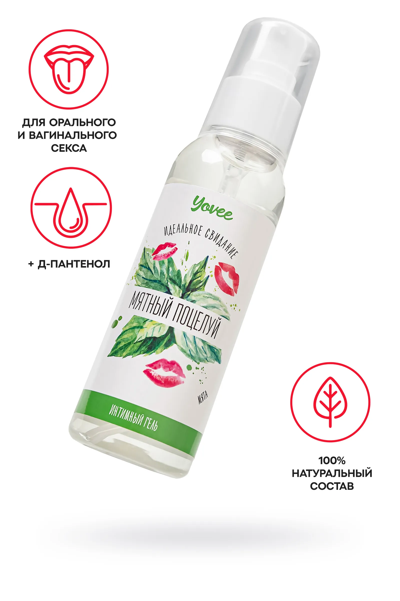 Интимный гель-смазка Yovee «Мятный поцелуй» подарит комфорт и безупречное скольжение. Пантенол окажет успокаивающее и смягчающее действие, ускорит процессы регенерации слизистых. Чарующий аромат и вкус мяты усилят удовольствие. Подходит для использования как с презервативом, так и без него. Шелковистая текстура на водной основе обеспечивает длительное скольжение без липкости и скатывания. Легко смывается водой, не оставляет следов на одежде и постельном белье. Простой и безопасный состав: БЕЗ ГЛИЦЕРИНА БЕЗ ПАРАБЕНОВ БЕЗ КРАСИТЕЛЕЙ БЕЗ САХАРА