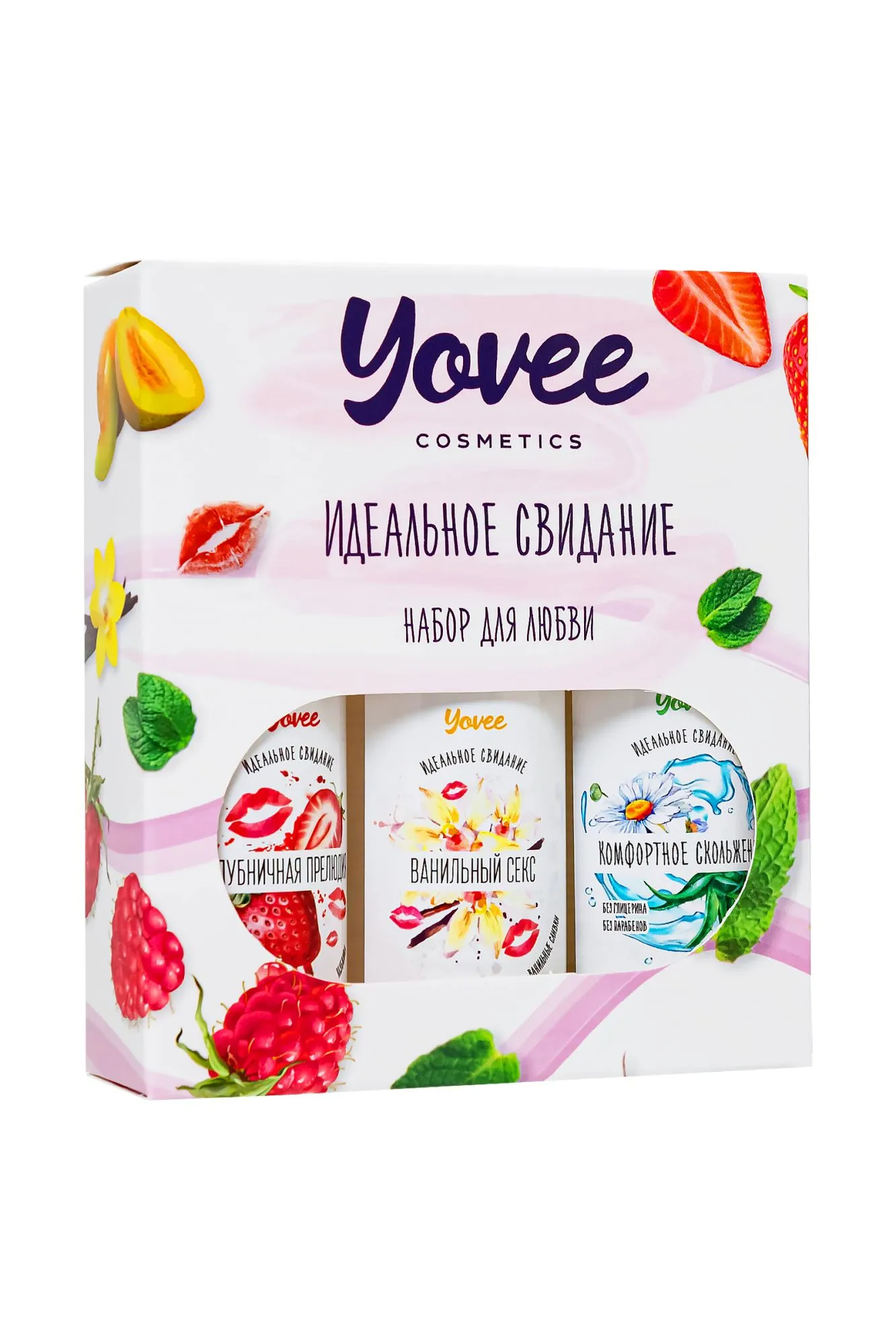 Набор интимных гелей "Набор для любви" от бренда Yovee - это отличный повод попробовать все и сразу. Набор состоит из трех интимных гелей-смазок: один без вкуса и запаха и два с яркими насыщенными вкусами и ароматами. Увлажняющий интимный гель-смазка с алоэ и ромашкой обеспечит долгое скольжение, увлажнение и смягчение слизистой. Съедобный гель с ярким вкусом и ароматом сладкой клубники или нежным сливочным вкусом с нотами ванили придаст оральному сексу еще больше пикантности и удовольствия. Каждый гель можно использовать как самостоятельно, так и смешав два или три геля и создав новый вкус клубники со сливками, либо скорректировать уровень сладости при помощи геля "Комфортное скольжение". Гели подходят как для вагинального, так и для орального секса. Совместимы со всеми видами презервативов и игрушек для взрослых. ИДЕАЛЬНЫЙ ПОДАРОК ВОЗМОЖНОСТЬ СОЗДАТЬ СВОЙ ВКУС Все гели Yovee имеют простой и безопасный состав: вода; гидроксиэтилцеллюлоза - стабилизатор эмульсий, регулятор вязкости; Д-пантенол защищает слизистые, запускает процесс регенерации тканей; сорбат калия и бензоат натрия – безопасные пищевые консерванты, разрешенные в натуральной и органической косметике; лимонная кислота помогает поддерживать оптимальный уровень рН, является естественным консервантом. БЕЗ ГЛИЦЕРИНА БЕЗ ПАРАБЕНОВ БЕЗ КРАСИТЕЛЕЙ БЕЗ САХАРА Комплектация: Увлажняющая гель-смазка Yovee «Комфортное скольжение» с Д-Пантенолом, алоэ и ромашка, 50 мл Съедобная гель-смазка Yovee «Клубничная прелюдия» с Д-Пантенолом, со вкусом клубники, 50 мл Съедобная гель-смазка Yovee «Ванильный секс» с Д-Пантенолом, со вкусом ванильных сливок, 50 мл