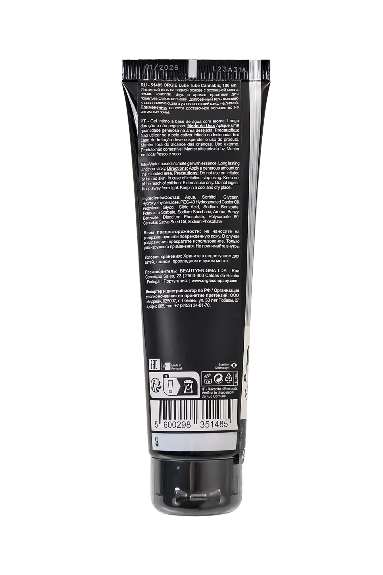 Дарите себе и вашему партнеру незабываемое путешествие в мир страсти с Lube Tube Cannabis. Этот гель на водной основе – это не просто лубрикант, это искусство заботы о вашем удовольствии. Обогащенный натуральным маслом семян конопли, он нежно увлажняет, позволяя вашей коже чувствовать мягкость и комфорт даже в самые страстные моменты. Забудьте о небольших раздражениях и травмах – масло конопли заботится о вашей коже, предотвращая их появление. Оригинальный вкус делает Lube Tube Cannabis идеальным выбором для оральных ласк, добавляя пикантности вашим интимным моментам. Отдельно стоит заметить, что использование такого лубриканта не преследуется по закону и не вредит здоровью. Нежная текстура геля обеспечивает сверх скользкость, без липкости и дискомфорта, и легко смывается после использования. Поднимите свой опыт интимной близости на новый уровень с Lube Tube Cannabis. Его функциональность – это не только приятная для поцелуев, сверх скользкая смазка, но и забота о коже, смягчение и успокоение. Доверьтесь высокому качеству и незабываемым ощущениям с лубрикантом Lube Tube Cannabis от бренда Orgie. вкус и аромат конопли без липкости длительное сверх скольжение pH -5.0 - 6.0