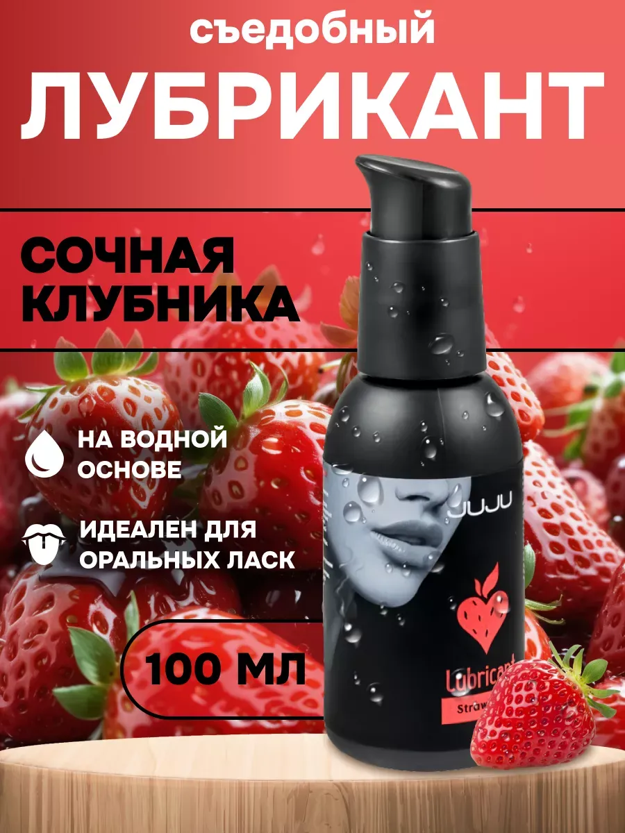 Съедобный лубрикант со вкусом клубники отлично подойдет для любого вида близости. Водная основа смазки позволяет разнообразить интимную жизнь, обеспечивая продолжительное шелковистое скольжение. Лубрикант можно использовать с любыми интим игрушками, а также с презервативами. Состав: вода очищенная, глицерин, гидроксиэтилцеллюлоза, бензоат натрия, сорбат калия, пропиленгликоль, ароматизатор пищевой, сахаринат натрия, лимонная кислота, объем – 100 мл, производитель – JuJu (Россия). срок годности-3 года.