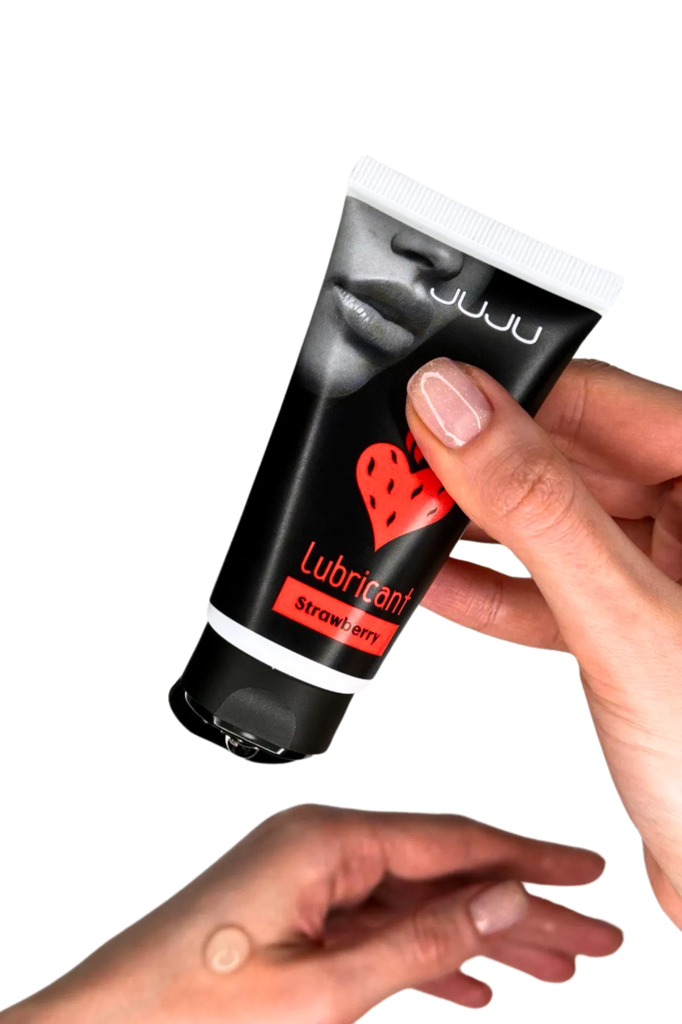 Съедобный лубрикант со вкусом клубники отлично подойдет для любого вида близости. Водная основа смазки позволяет разнообразить интимную жизнь, обеспечивая продолжительное шелковистое скольжение. Лубрикант можно использовать с любыми интим игрушками, а также с презервативами. Состав: вода очищенная, глицерин, гидроксиэтилцеллюлоза, бензоат натрия, сорбат калия, пропиленгликоль, ароматизатор пищевой, сахаринат натрия, лимонная кислота, объем – 50 мл, производитель – JuJu (Россия). срок годности-3 года.