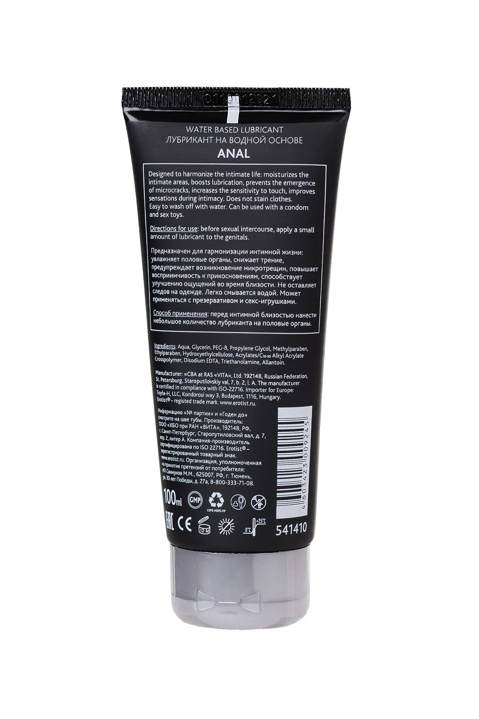 Больше никаких неприятных ощущений, болезненного проникновения и вредных последствий — от всего этого защищает анальный лубрикант на водной основе Erotist Anal. Идеально увлажняет половые органы, снижает трение, предупреждает возникновение микротрещин, а также увеличивает наслаждение от близости. Пора открыть для себя безупречный анальный секс! Лубрикант Erotist Anal имеет водную основу: он гипоаллергенен, совместим с презервативами и игрушками для взрослых, не оставляет следов и легко смывается водой.