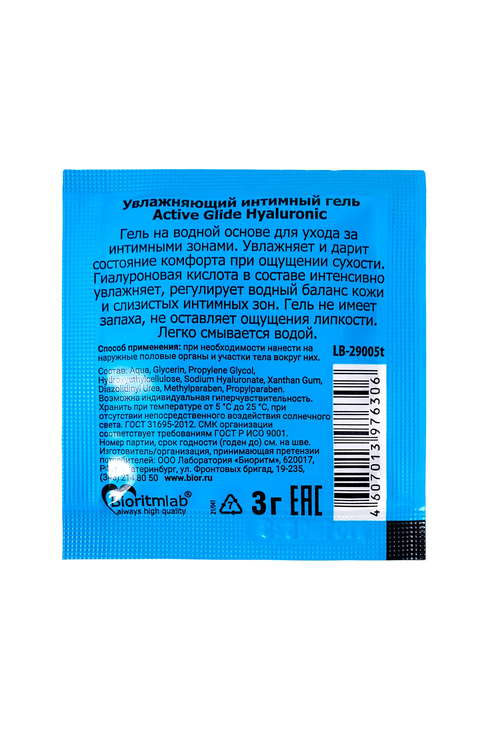 —Увлажняющий интимный гель ACTIVE GLIDE HYALURONIC, 3 г 20шт в упаковке