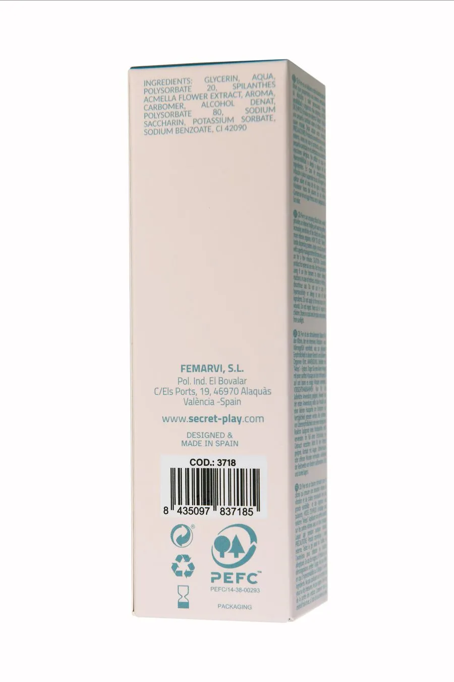 глицерин, вода, полисорбат 20, экстракт цветков спилантеса акмеллы, ароматизатор, карбомер, денатурированный спирт, полисорбат 80, сахарин натрия, сорбат калия, бензоат натрия, CI 14720.