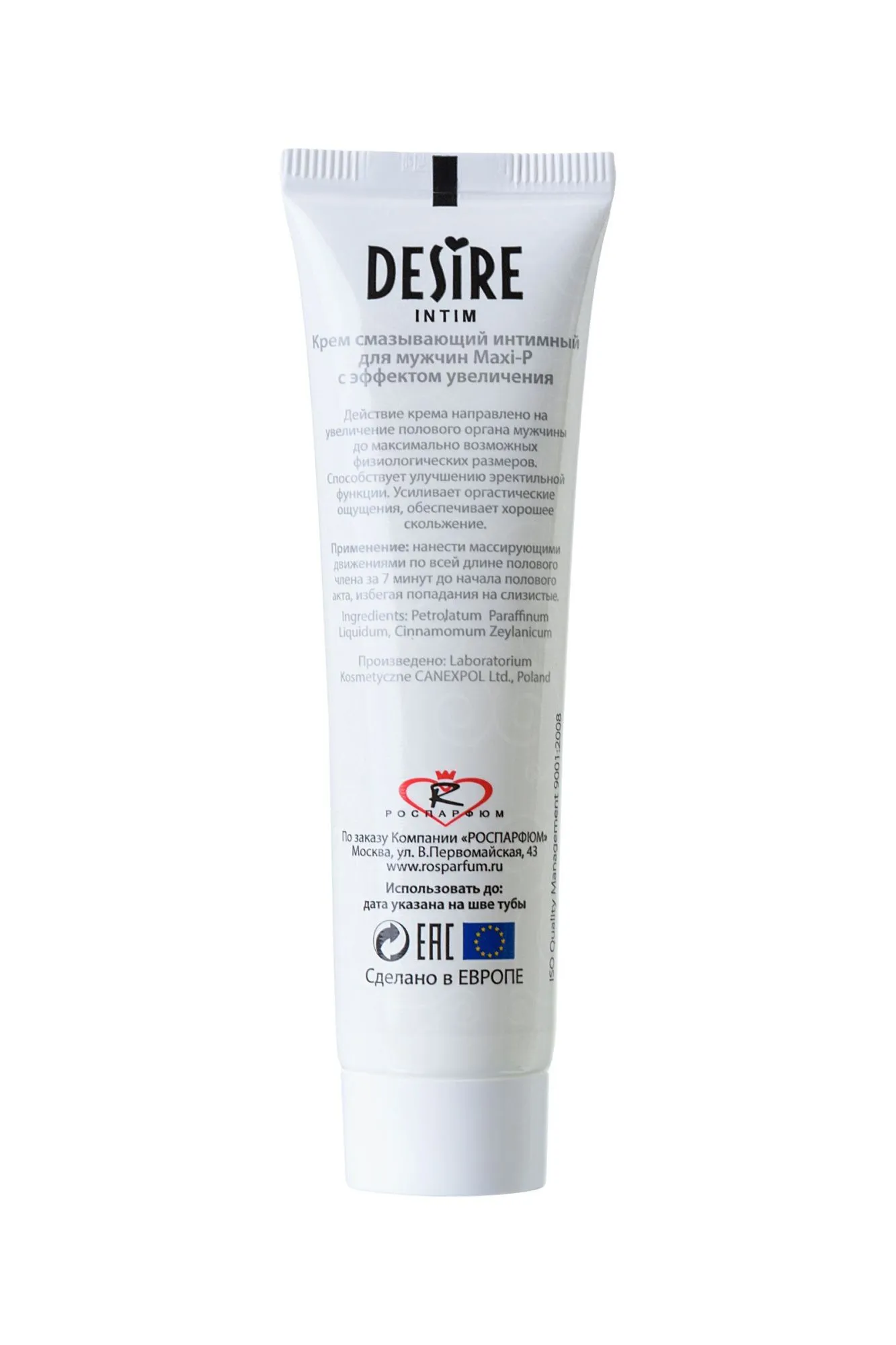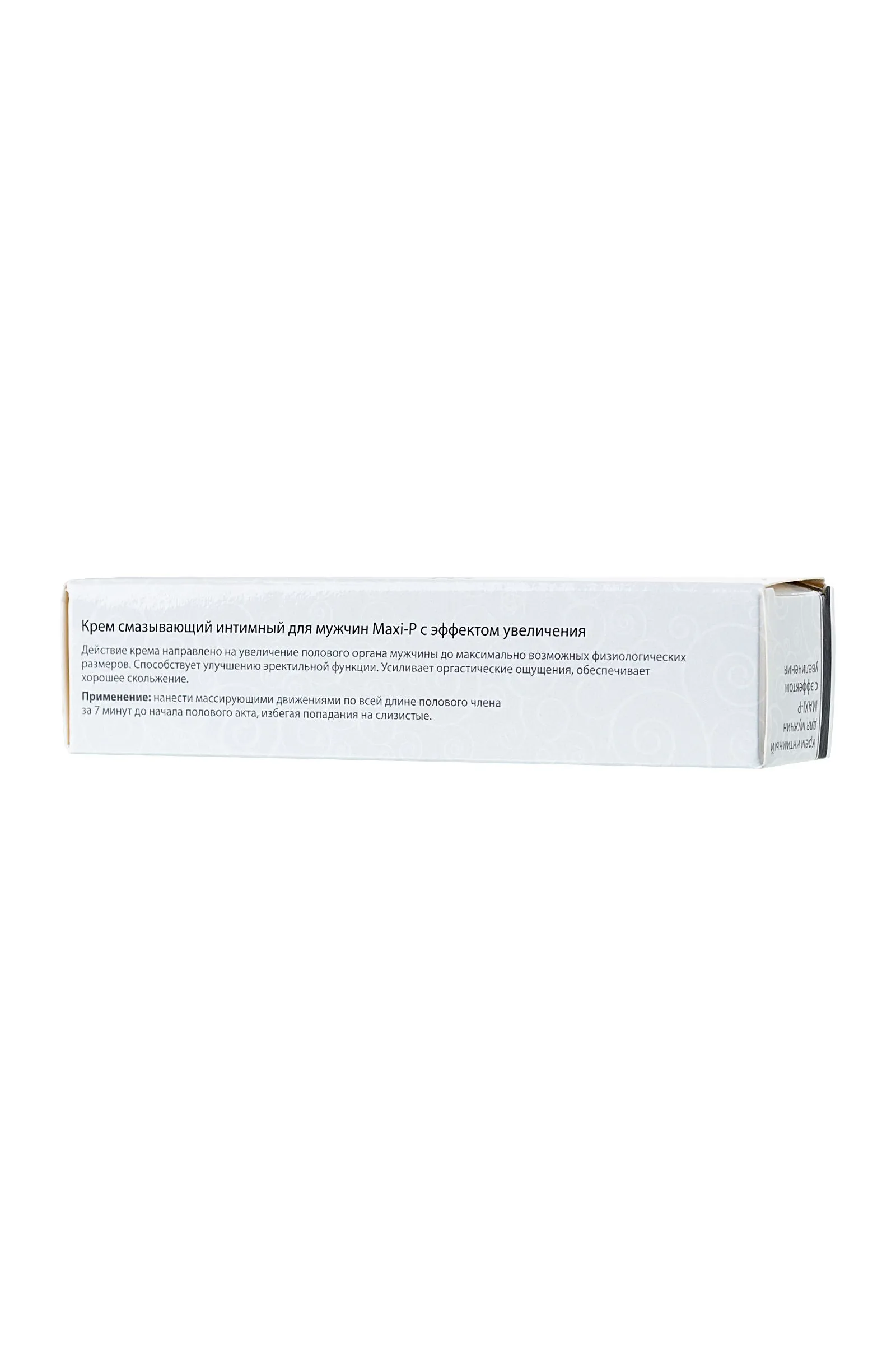Интимный крем «DESIRE Intim» «MAXI-P» для мужчин, желающих увеличить половое достоинство, улучшить и обострить сладострастные ощущения. На время полового акта действие крема увеличивает член до максимального физиологически возможного размера, усиляет возбуждение, эрекцию и оргазм. У крема разогревающий эффект, так как в него добавлен экстракт корицы цейлонской, поэтому за короткий отрезок времени к члену приливает большой поток крови и все складочки, в длину и ширину наполняются и растягиваются, тем самым увеличивая половой орган. При длительном использовании крема и специальной гимнастике с вакуумной помпой, половой орган мужчины может увеличиться на несколько сантиметров. Особое внимание уделить тому, КАК наносить крем! Попросите партнёршу или самостоятельно, выдавить крем размером с горошину на чистую ладонь, равномерно распределить между ладонями и лёгкими прикосновениями нанести крем на ствол пениса не затрагивая головку, так как НЕ РЕКОМЕНДУЕТСЯ наносить крем на слизистую! Дать крему впитаться 5-10 мин