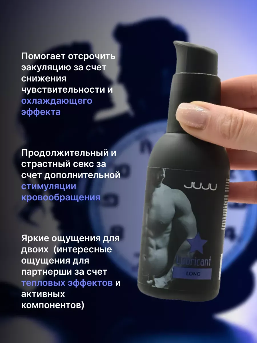 Сделать любовный акт необычно продолжительным и по-настоящему приятным, страстным сексуальным партнерам поможет пролонгирующий лубрикант JUJU Long. Мягкое успокаивающее (и даже заживляющее) воздействие осуществляется благодаря уникальному составу смазки: охлаждающему ментиллактату и устраняющим болезненные ощущения экстракту ромашки, пантенолу. Чудесно подходит для использования с презервативами. Легко удаляется с тела с помощью мыльной воды. Дарит просто превосходные – чувственные и нежные – фрикции. Состав: вода очищенная, глицерин, ПЭГ-40 гидрогенизированное касторовое масло, метилпарабен,этилпарабен в пропиленгликоле, экстракт ромашки, гидроксиэтилцеллюлоза, пантенол,метиллактат, лимонная кислота, сополимер акрилатов, триэтаноламин, ЭДТА. Срок годности- 3 года.