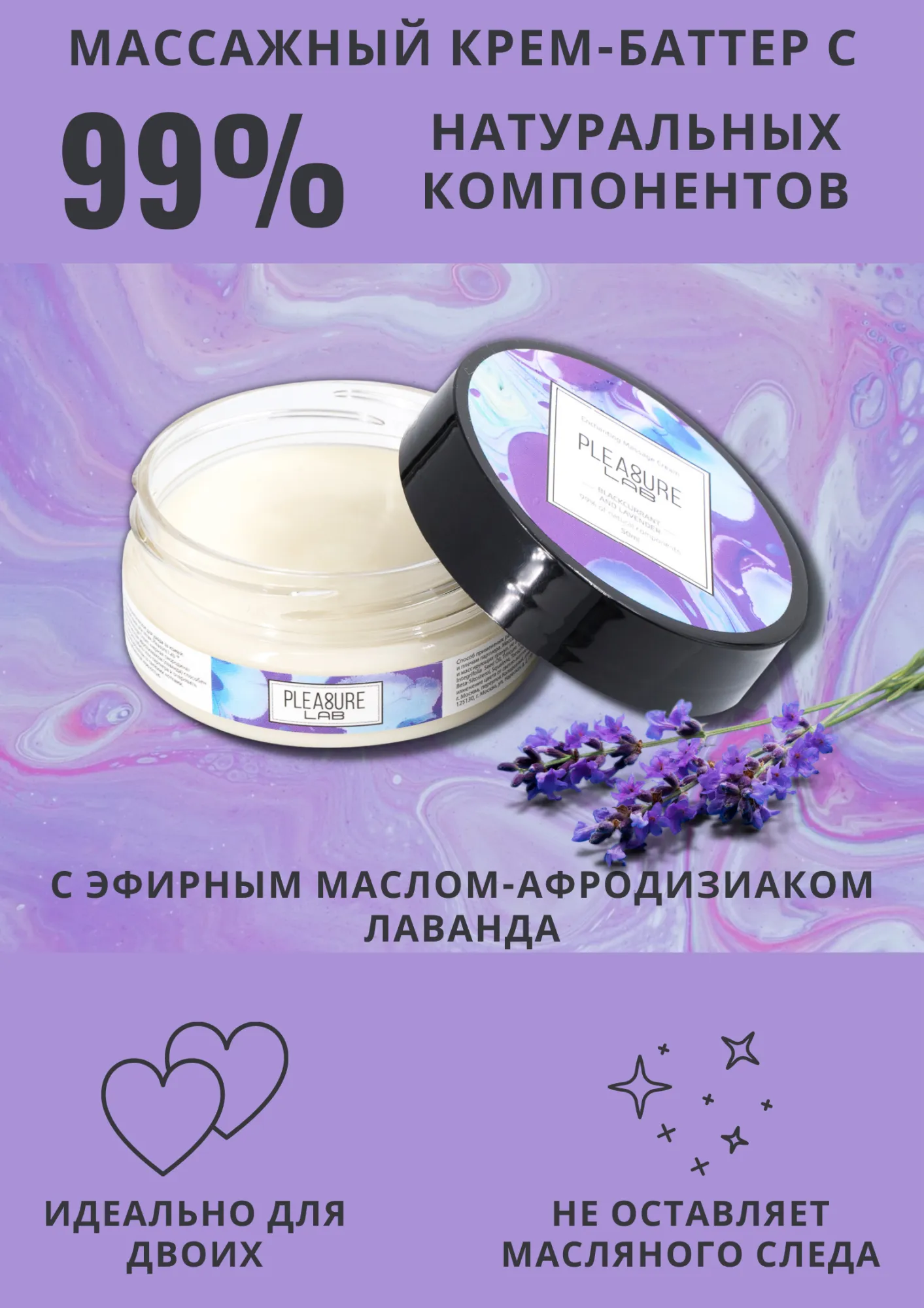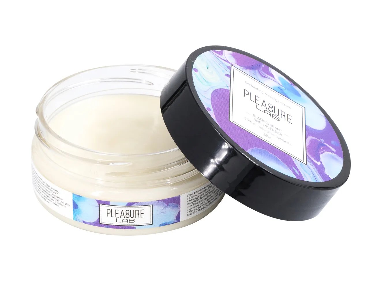Pleasure Lab Enchanting с ароматом черной смородины и эфирным маслом-афродизиаком лаванда способен полностью расслабить тело партнера и очаровать изысканным ароматом со свежими нотками, одаривая небывалой нежностью. Способ применения: разотрите небольшое количество крема в ладонях и медленно начните продвигаться массирующими движениями от ступней к спине и плечам партнера. Массажный крем подходит для самомассажа, а также выравнивает и увлажняет рельеф кожного покрова за счет специальных активных ингредиентов и массирующих гранул, не оставляя маслянистой пленки. Состав: масло ши (карите), масло кокосовое, масло оливковое, масло макадамии, масло зародышей пшеницы, парфюмерная композиция, эфирное масло лаванды, СК-СО2 экстракты (розмарин, плоды черной смородины), натуральный антиоксидант (токоферол (смесь), бета-ситостерол, сквален), витамин Е. Срок годности- 2 года.