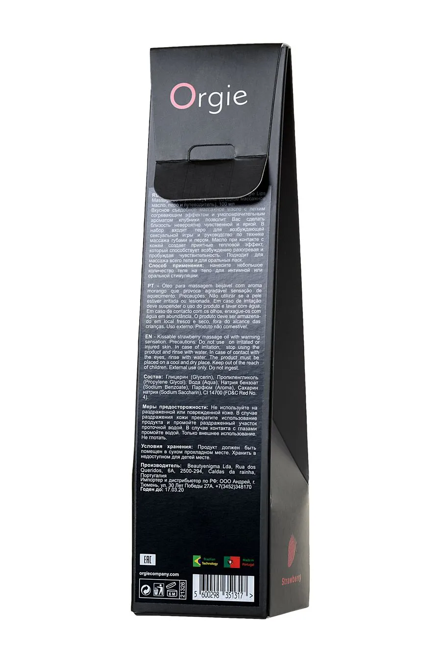 - Сладкое массажное масло Orgie Lips Massage обладает согревающим эффектом. При прикосновениях оно создает возбуждающее тепло. Потрясающий вкус клубники служит отличным поводом, чтобы с удовольствием исследовать тело партнера и взволновать его не на шутку. Можно применять в самых разных вариантах — расслабляющий массаж или эротический, оральные ласки или просто жаркие поцелуи.
