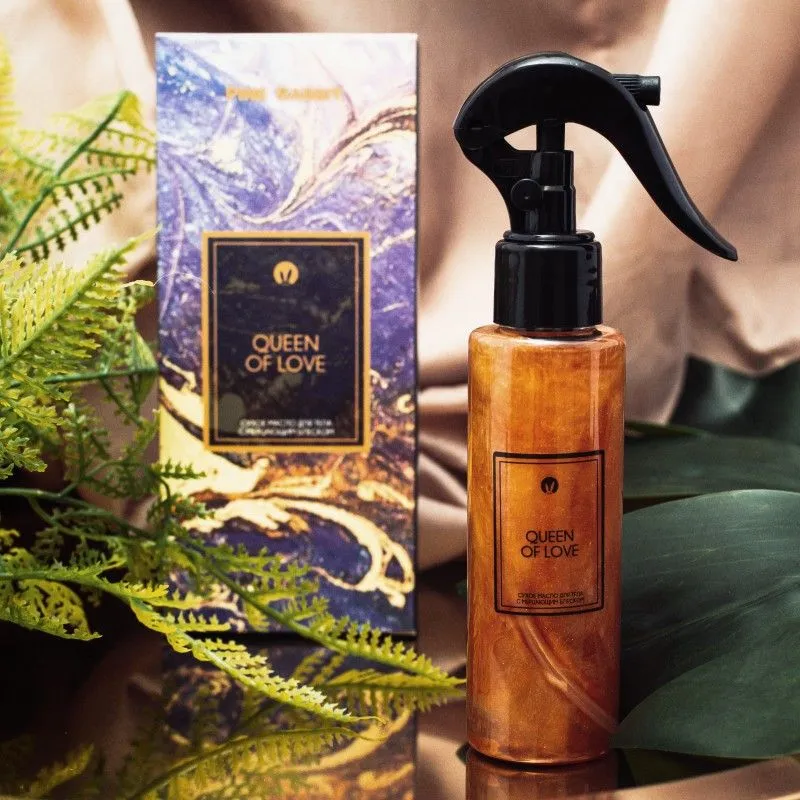 Циклометикон, каприлик (фракция кокосового масла), масло виноградной косточки, масло кунжутное, масло сладкого миндаля, масло авокадо, циклометикон, масло арганы, масло жожоба голден, косметический глянцевый пигмент с перламутровым блеском, ароматизаторы косметические, галаксолид 50 (цветочный мускус - феромон), эфирные масла, витамин Е, экстракт розмарина, токобиол (антиоксидант), аромафикс (натуральное вещество, полученное из глюкозы и замедляющее скорость испарения парфюмерной композиции и т.е. повышающие её стойкость).