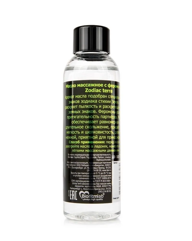 Масло массажное с феромонами Zodiac Terra, 75 мл