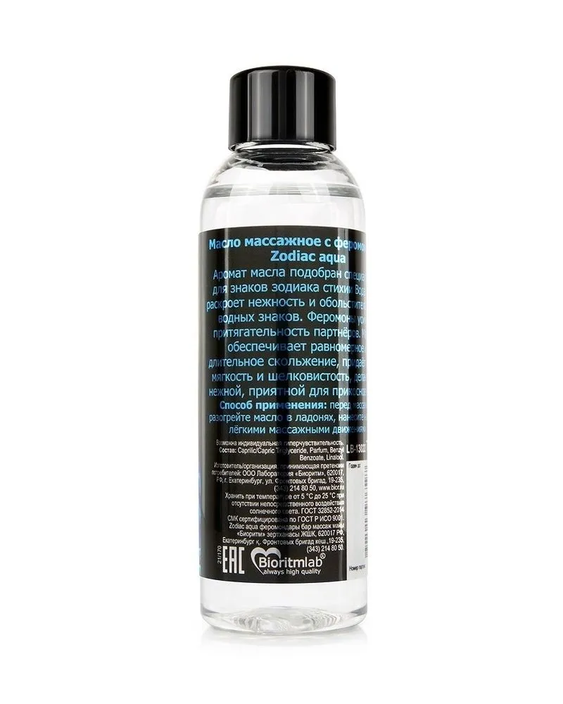 Массажное масло Zodiac Aqua откроет мир чувственности и страсти, внесёт нотку пикантности и разнообразит интимную жизнь! Его аромат подобран в тандеме с астрологами специально для знаков зодиака стихии Вода - Рыбы, Рак, Скорпион.
