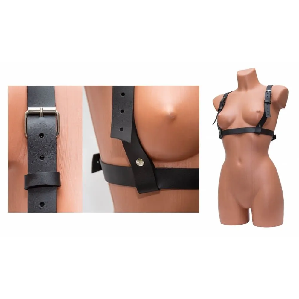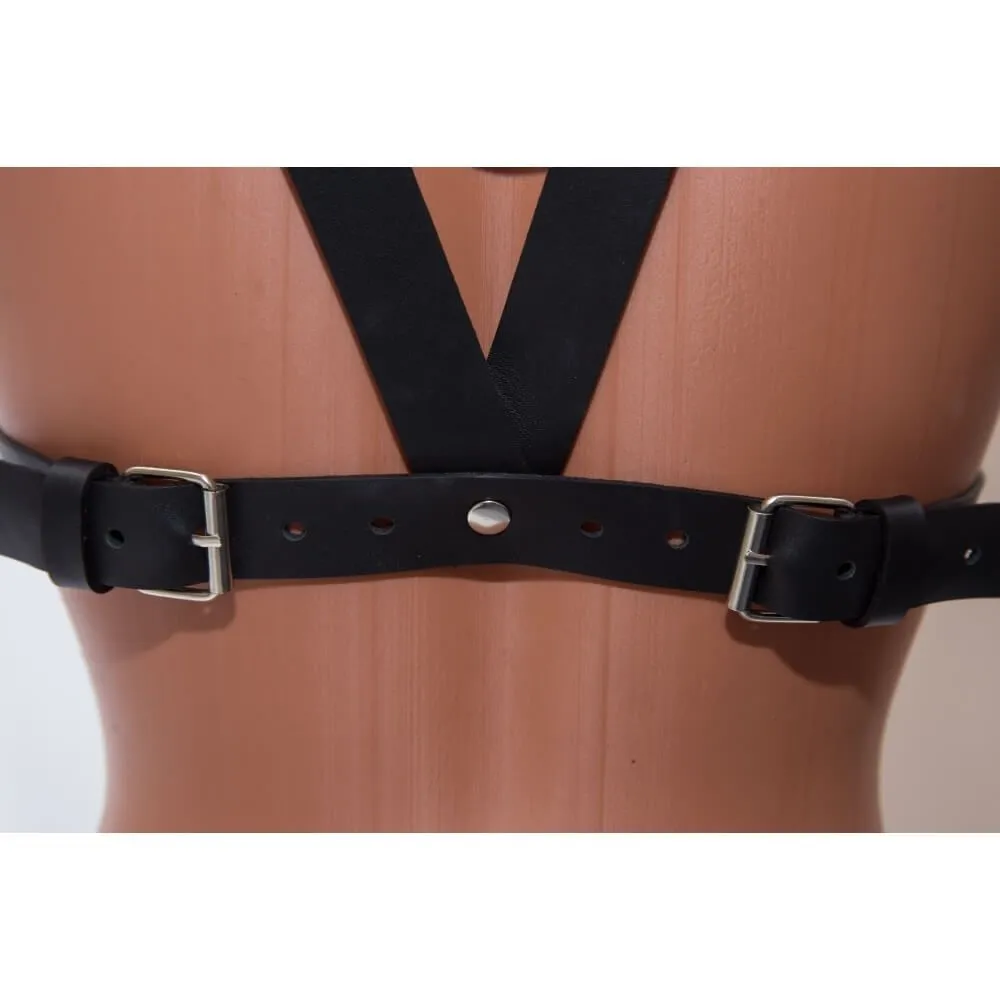 Женская портупея от бренда Lapin Rose прекрасно дополнит любой образ, которому хочется придать особый стиль и воинственность. Спереди она выглядит просто и стильно, однако сзади ремни образуют треугольник, украшенный металлическими клепками. Портупея изготовлена из плотной натуральной кожи, а вся фурнитура выполнена из нержавеющей стали с никелированным покрытием. Широкий ремень комфортно прилегает к телу и дает ощущение поддержки, а удобный фиксатор поможет отрегулировать силу обхвата. Плечевые ремни удобно регулируются легкодоступными застежками.