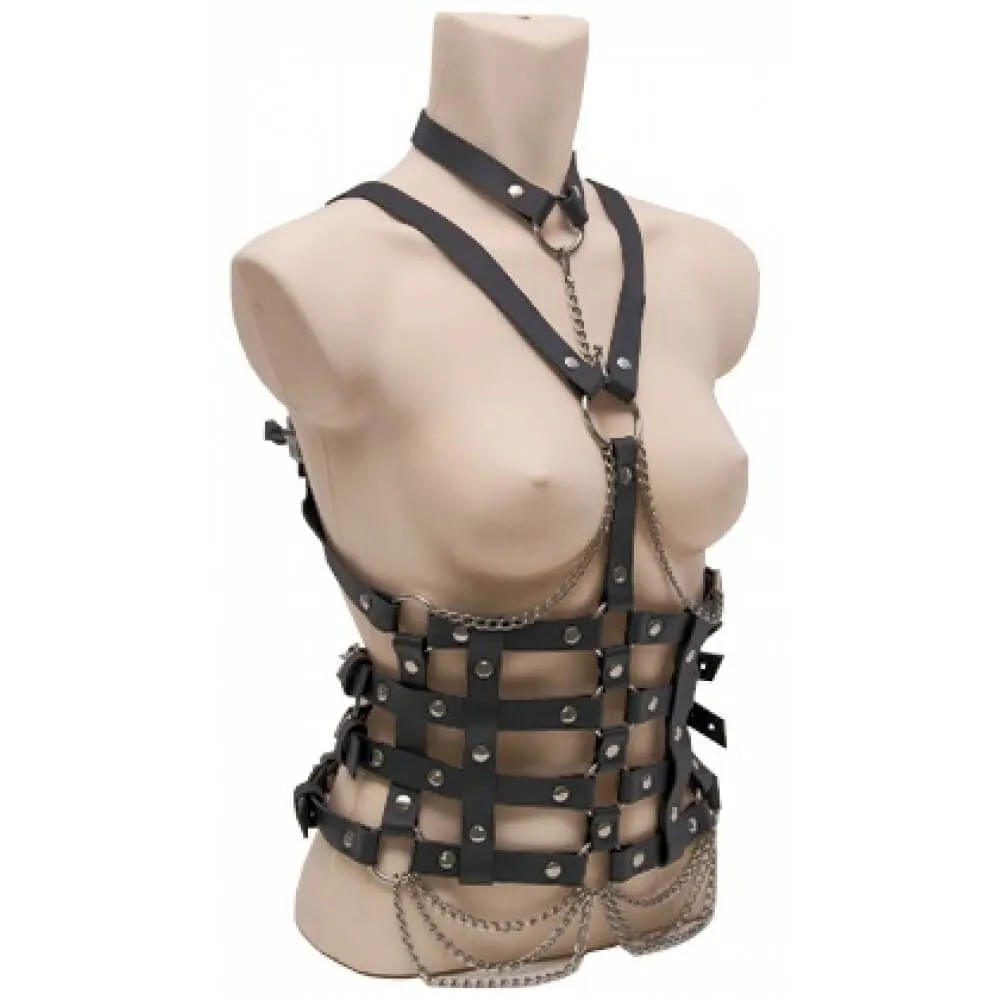 Женская портупея Lapin Rose прекрасно дополнит любой образ, которому хочется придать особый стиль и воинственность. Данный аксессуар изготовлен из плотной натуральной кожи. Вся фурнитура выполнена из нержавеющей стали с никелированным покрытием. Широкий ремень комфортно прилегает к телу и дает ощущение поддержки, а удобный фиксатор поможет отрегулировать силу обхвата. Плечевые ремни так же удобно регулируются легкодоступными застежками.